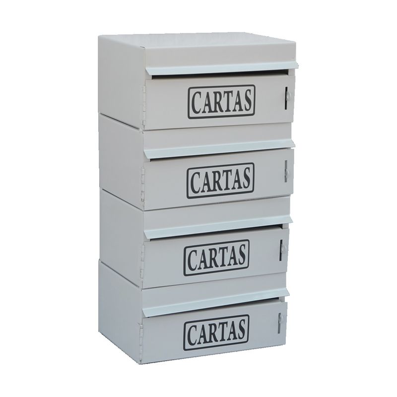 Caixa Correio Condomínio Frontal Para Muro Cinza 4 Módulos Ideal para prédios e grandes obras. Ideal para condomínios, jardins, praças, parques, vias urbanas, áreas externas e internas em geral. Ótimo custo benefício. Acondicionamento de cartas. Segurança e facilidade para retirar as correspondências. Alta durabilidade. Características do Produto:Material: Chapa de Aço Carbono.Comprimento: 15cm.Largura: 23cm.Altura: 44cm.Peso: 2,60Kg. Itens Inclusos:01 Caixa Correio Condomínio Frontal Para Muro Cinza 4 Módulos. Código: A196-OM.ProdutoLojaPlast.