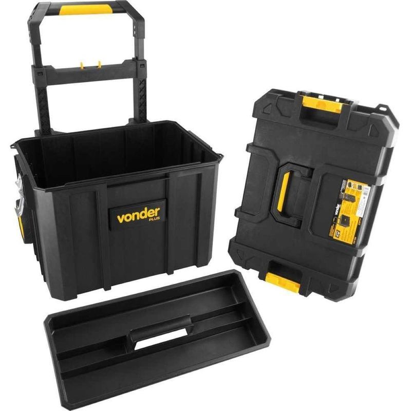 Caixa De Ferramentas Plástica Com Rodas Crv 900 Vonder#html-body [data-pb-style=MX2913R]{justify-content:flex-start;display:flex;flex-direction:column;background-position:left top;background-size:cover;background-repeat:no-repeat;background-attachment:scroll}Caixa para Ferramentas Vonder Plástica com Rodas CRV 900 - Vonder OficialA Caixa para Ferramentas Vonder CRV 900 é a solução ideal para profissionais exigentes que buscam eficiência, segurança e praticidade no armazenamento e transporte de ferramentas. Com design robusto e altamente funcional, ela oferece a versatilidade necessária para organizar, transportar e proteger seus equipamentos em qualquer tipo de ambiente de trabalho. Pensando no conforto do usuário, a CRV 900 é equipada com uma alça retrátil e rodas emborrachadas, que garantem maior facilidade no transporte, mesmo em terrenos irregulares. Seu design com rodas permite deslocamentos ágeis e seguros, sem o esforço de carregar peso, o que é essencial para quem precisa de mobilidade em ambientes de trabalho dinâmicos e desafiadores. Com dimensões de 545 mm (comprimento) x 440 mm (largura), a Caixa CRV 900 oferece amplo espaço interno para armazenar ferramentas de maior porte, como chaves, martelos e outros equipamentos pesados. Sua capacidade de carga de até 50 kgf garante que você possa transportar com segurança uma grande quantidade de ferramentas sem comprometer a estrutura da caixa. Além disso, o design inclui uma bandeja removível, ideal para itens menores, permitindo a organização e o fácil acesso a peças e acessórios essenciais. Com a vedação IP53, a Caixa CRV 900 é projetada para resistir a condições adversas, como umidade e poeira. Essa vedação impede que agentes externos danifiquem o conteúdo da caixa, garantindo que suas ferramentas permaneçam protegidas e seguras. As travas metálicas reforçadas e a porta-cadeado oferecem uma camada adicional de segurança, permitindo que você deixe sua caixa em locais públicos ou durante o transporte sem preocupações. Uma das grandes vantagens da Caixa CRV 900 é sua capacidade de ser acoplada a outros produtos da linha Vonder, como a Bolsa em Lona BL 900, o Organizador Plástico OPV 900 e a Caixa Plástica CPV 900 (itens vendidos separadamente). Essa compatibilidade torna a CRV 900 extremamente versátil e perfeita para quem busca um sistema de organização completo e integrado, de acordo com as suas necessidades específicas. Com a Caixa para Ferramentas Vonder CRV 900, você tem um produto que não apenas atende às suas necessidades de armazenamento e transporte, mas também proporciona mais segurança e conforto, aumentando a produtividade e a eficiência no trabalho. Ideal para profissionais que buscam qualidade, praticidade e resistência.Especificações- Material (tipo/composição): Polipropileno- Cor da caixa: Preta e amarela- Comprimento (mm): 545 mm- Largura: 440 mm- Altura: Com cabo recolhido 720 mm. Com cabo estendido 1.040 mm- Capacidade de carga (kgf): 50 kgf- Massa aproximada (peso) (kg): 8,450 kg- Observação: IP53Itens inclusos- Caixa para Ferramentas Vonder CRV 900Garantia- 3 meses com o Fabricante Produto: Caixa de Ferramentas Plástica com Rodas CRV 900 | Cor: Preto | Material: Polipropileno | Altura: 1040 | Largura: 44 | Peso do Produto: 8,4 | Capacidade de Peso: 50