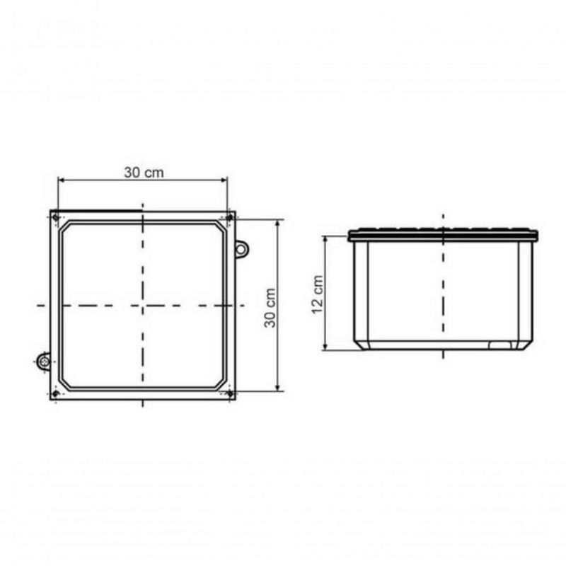Caixa De Passagem Tramontina 30x30 Alumínio Tampa ReversívelIdeal para montagem de equipamentos elétricos em geral e/ou outras ligações em ambientes úmidos e com emanação de gases não inflamáveis. Possui tampa reversível (face lisa e face antiderrapante), acompanham junta de vedação e parafusos.Recomendações de Uso:- A instalação e : É importante que o produto seja instalado por habilitado. - Antes de instalar, desligue a energia elétrica.Informações Adicionais:- Instalação IP65.