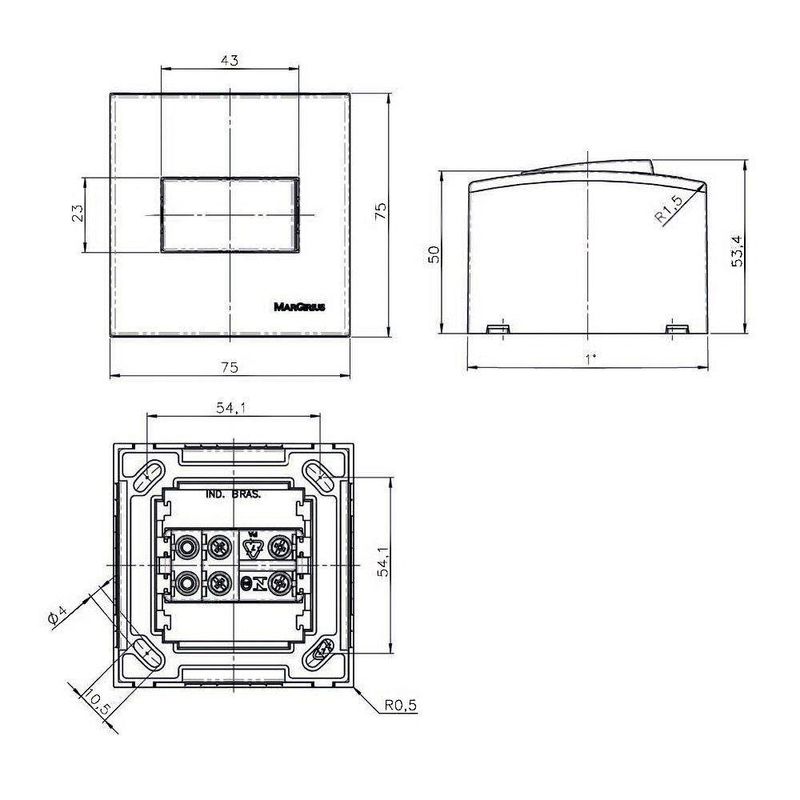 Caixa De Sobrepor Com Suporte Margirius Sleek 75x75 Para 1 Módulo BrancaCaixa de Sobrepor com Suporte MarGirius Sleek 75x75 para 1 Módulo BrancaCaracterísticas Gerais do Produto: Cor: Branco Material: Placa em ABS com aditivo contra raio-uv e Suporte em PA6 30% fibra de vidro Acabamento: Alto Brilho Acompanha Placa: Sim Acompanha Suporte: Sim Acompanha Módulo: Não Tamanho: 75x75 Tipo: Para 1 Módulo Dimensões AxLxP (mm): Caixa: 75x75x50 - Suporte: 54,1x54,1 Linha: Sleek Referência: PA018643 Acompanha o produto: - 1 Caixa de Sobrepor com Suporte para 1 Módulo Garantia: - 5 anos junto ao fornecedor