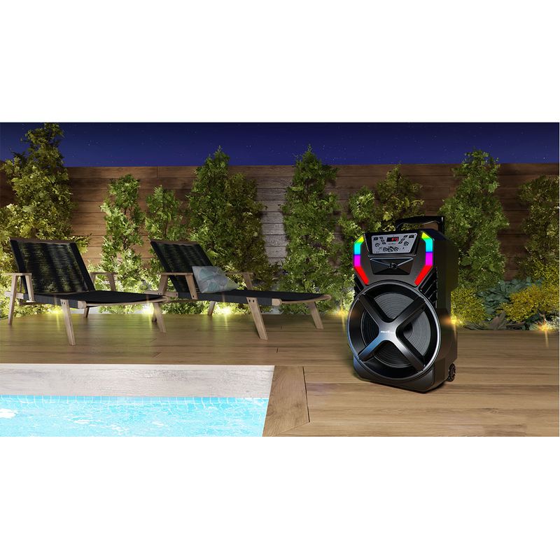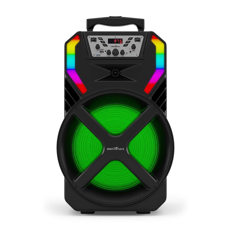 Dance, cante e sinta a música! Torne os momentos com a família e os amigos inesquecíveis com aCaixa de Som Amplificada Britânia BCX12100 Woofer 12” 700W! São 700W de potência e pura diversão com a Caixa Acústica Britânia. Ela conta com Woofer de 12” + Tweeter, ou seja, muito mais harmonia e qualidade nos agudos. Por ser equipada com Bluetooth V5.0, você pode conectar seu smartphone na Caixa Acústica com muito mais segurança e rapidez. Cante suas músicas favoritas com a Caixa de Som 700W Britânia! Ela possui entrada P10 para microfone, equipado com Echo, controle de volume e função REC para gravar os sons do microfone. A função Flash Lights, incrível sistema de luzes, garante um aspecto muito mais festivo para sua festa, enquanto a bateria recarregável com duração de até 4 horas não deixa a festa acabar. Escute suas músicas favoritas com a mais alta qualidade com a Caixa de Som Britânia BCX12100! • Entrada USB para reprodução de música • Entrada AUX IN (P2) • Entrada para cartão de memória • 1 Tweeters tipo chifre (Este modelo não tem medidas) • 1 Alto Falante 12" • Uma entrada para Microfone externo (P10) • Bluetooth 5.0 • Rádio FM • Display Digital • Equalização digital pré-programado (Classic, Pop, Rock, Normal, Jazz) • Flash Light (não é ritmado com a música) • Memorização de estações de rádio • Função Britânia Connect (conectividade entre duas BCX12100) TWS • Função P-MODE (repeat one, repeat all) • Função ECHO • Alça e rodinhas para transporte. | Oferta enquanto durarem os estoques.