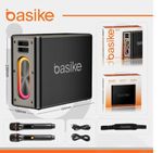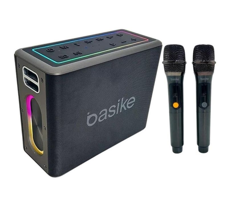Caixa De Som Bluetooth Karaokê Rgb 120W Com 2 Microfones Sem Fio BasikeA Caixa De Som Bluetooth e Karaokê RGB da marca Basike é a escolha perfeita para quem busca qualidade de som e diversão em qualquer lugar. Com uma potência de saída de 120W, este modelo portátil oferece um som envolvente e potente, ideal para festas, reuniões ou momentos de descontração. Sua autonomia de até 5 horas permite que você aproveite suas músicas favoritas sem interrupções, enquanto a bateria recarregável garante praticidade. Este equipamento não é apenas uma caixa de som, mas também um sistema de karaokê completo, com dois microfones incluídos. A função de efeito de voz adiciona um toque especial às suas performances, tornando cada apresentação única. Além disso, as luzes LED criam um ambiente festivo, iluminando o espaço e elevando a experiência musical. Com conectividade Bluetooth e Wi-Fi, você pode facilmente conectar seus dispositivos e reproduzir suas playlists favoritas. A classificação IPX6 torna este produto resistente à água, permitindo que você o utilize em ambientes externos sem preocupações. Seu design portátil e sem fio facilita o transporte, tornando-o ideal para qualquer ocasião. A Caixa De Som Bluetooth e Karaokê RGB é perfeita para quem ama música e diversão. Seja em casa, na praia ou em um piquenique, este produto se adapta a diferentes ambientes, proporcionando uma experiência sonora de alta qualidade. Transforme seus momentos de lazer em verdadeiras festas com este equipamento versátil e inovador. Principais Caracteristcas:- É mãos livres- Tipo de alto-falante: caixa de som ativa profissional, tweeter- Adequado para uso ao ar livre- Possui conectividade Bluetooth- É à prova d'água.- Possui luzes LED.- Função de karaokê integrada.- Diferentes efeitos de voz.- Resposta mínima de frequência de 50Hz e máxima de 20kHz.- Bateria recarregável- Potência de 120W.- Vem com 2 microfones de acessório.- Conector de entrada: Auxiliar, Plug, Leitor SD, USB.- Lugar de colocação: de bancada e o piso e praia e sala e chão.- Dimensões: 10cm de largura, 23cm de altura e 18.3cm de profundidade.- Possui microfone interno.- Tempo de carga da bateria: 2h.