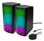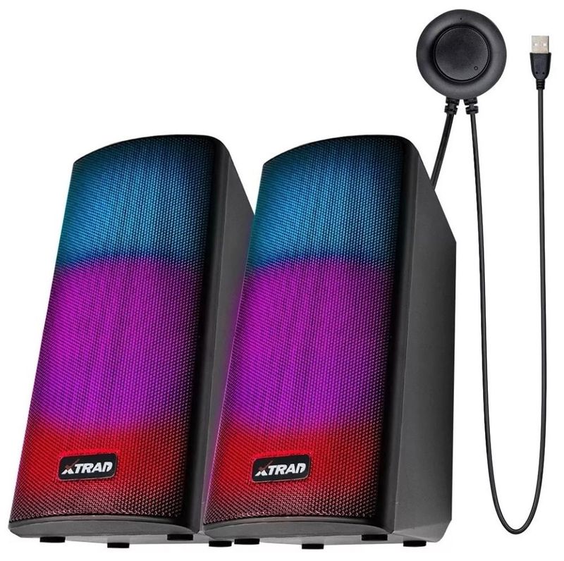 Caixa de som RGB para computador multifuncional Xtrad XDG-297Caixa de som multifuncional que conta com extensor para você conectar seu microfone, cartão SD ou até mesmo seu fone de ouvido facilmente.Conta com LED RGB com vários efeitos para incrementar seu setup.Conta com controle separado para ajustar o volume e realizar as outras conexões disponíveis.Este modelo conta com função bluetooth para conectar aparelhos sem fio!Especificações técnicas:Som: EstéreoPotência: 2 x 3W RMSFrequência de resposta: 90 - 20.000HzRSR: >60dBAlimentação: USB DC5VConexão: Bluetooth, USB, cartão SD, entrada para microfone e saída para para Fone de ouvido.Distância máxima: 10 metros (Pode variar dependendo da estrutura do local)Conteúdo da embalagem:01 Caixa de som01 Manual de instruções