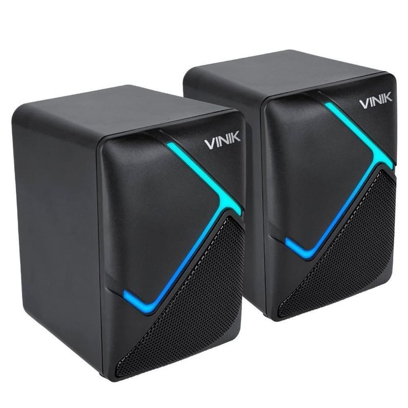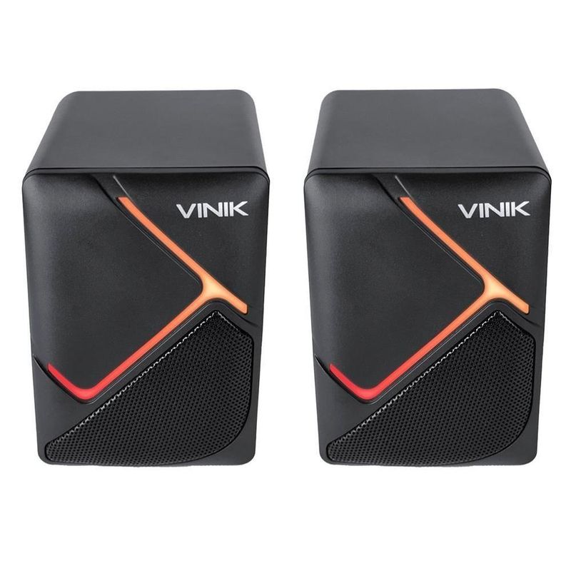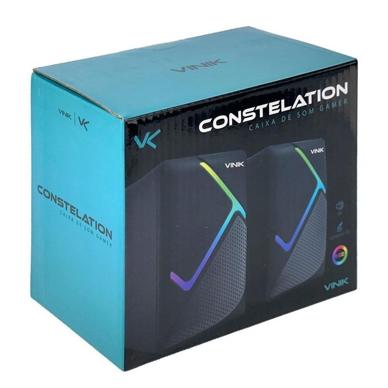 Caixa De Som Gamer Vinik Constelation 6w 2.0 Led Rainbow...Material: Plástico ABSIluminação LED: Ciclo de cores automáticoTamanho aproximado:65x80x100mm cadaCompatível com computadores, notebooks, celulares, entre outrosCanais: 2.0Controle de volume via caboCabo proximadamente 1,2mTamanho do auto falante: 52mmEntrada de áudio: Conector 3.5mmAlimentação de Energia: USB 5VPotência: 3W *2Impedância: 4 Ohms *2Resposta de frequência: 120-20K Hz