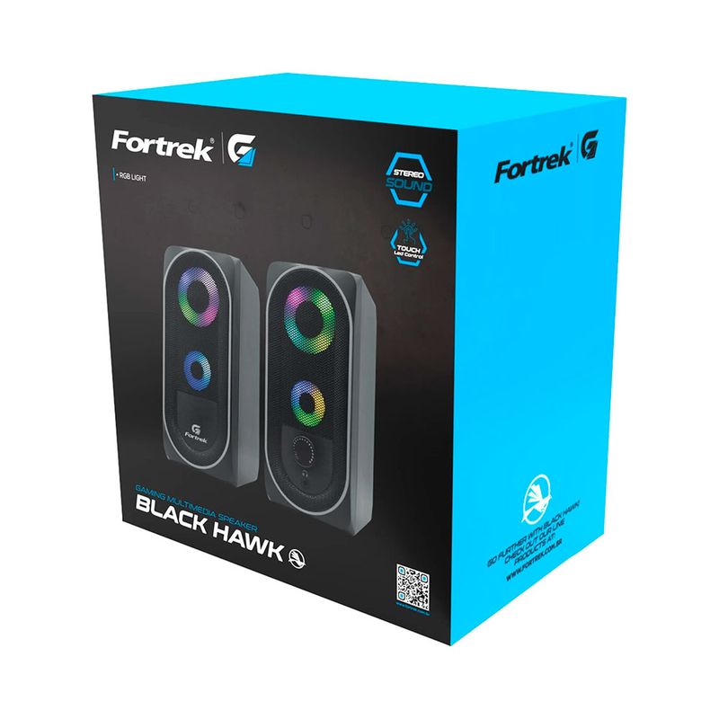 CAIXA DE SOM MULTIMÍDIA FORTREK GAMER BLACK HAWK RGB A Caixa de Som Multimidia Gamer Black Hawk Fortrek chegou para trazer muito mais estilo e dar um "upgrade" no seu setup. Já pensou você no gameplay do seu jogo favorito e estar totalmente imerso como se estivesse dentro de toda essa realidade virtual? A Caixa de som gamer Black Hawk é pensada para você ter o som perfeito! Ela ainda traz ao mesmo tempo um design arrojado e leve, recursos como "touch control" onde você ajusta a iluminação, botão de volume, conectividade USB e transmissão de áudio via P2 (3.5mm). CARACTERÍSTICAS Marca: FORTREK G Modelo: Black Hawk RGD Potência: 3w +3w (6w total) Conector: 1 x P2 (Audio) Alimentação: 1 x USB (alimentação) INFORMAÇÃO ADICIONAL Saída do alto falante: 3w +3w (6w total) Frequência: 150 Hz - 20 KHz Entrada de energia: DC 5V Operação: Não requer a instalação do driver para funcionamento Compatibilidade: Windows XP/Vista/Win7/Win8/Win10/Mac OS X 10.2 e Superior ITENS INCLUSOS 1 Caixa de Som Multimídia Gamer 1 Manual de Instruções Garantia: 6 meses FORNECEDOR - HAYAMAX