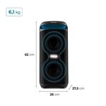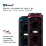 Elegância, tecnologia e sofisticação são palavras de ordem para a PartyBox AWS-PB-08. Com DNA AIWA, seus 160W RMS garantem a potência sonora para manter a animação lá em cima! São 2 woofers de 6,5’’, com graves mais profundos e poderosos, e 2 tweeters de 1,5’’, que trazem agudos claros e cristalinos. A PartyBox também vem com RGB Color Lights, para deixar a pista radiante! E a festa não vai parar tão cedo, pois a bateria pode durar até 8 horas ininterruptas. Saiba mais sobre a PartyBox AWS-PB-08 da AIWA: 160W RMS DE POTÊNCIA: Transformando qualquer ambiente em um palco vibrante e cheio de energia, a AWS-PB-08, com seus 160W RMS de potência, reúne tudo que uma caixa de som precisa: qualidade e intensidade sonora! SOM DE ALTA DEFINIÇÃO: O sistema de duas vias ressoa a sincronia perfeita entre graves encorpados e agudos cristalinos. Resultado dos 2 woofers de 6,5’’, com graves mais profundos e poderosos, e dos 2 tweeters de 1,5’’, que trazem agudos claros e límpidos. APP: CONTROLE TUDO PELO CELULAR: Assuma o controle da sua PartyBox ajustando, pelo aplicativo AIWA Brasil, funções como DJ Effects, equalização, modos e níveis de intensidade das luzes. Aproveite essa facilidade e adicione ao line-up uma dose extra de animação! RGB COLOR LIGHTS: O brilho intenso das luzes multicoloridas ganha visual neon que, com o efeito estroboscópico, traz uma atmosfera ainda mais radiante e pulsante, um clima perfeito para fazer a festa! 8 HORAS DE BATERIA: Seja em qualquer lugar onde a festa for acontecer, a sua PartyBox garante a animação durante 8 horas seguidas, sem se preocupar com recargas. CONECTE MICROFONES E DÊ SEU SHOW: Sabe aquele amigo que só se diverte cantando? Ele pode assumir o comando da voz e fazer até um dueto, já que a PartyBox tem entrada para dois microfones. Além disso, a Caixa de Som possui 1 conexão via USB, 1 entrada para cabo auxiliar e mais 1 para micro SD. Ou seja, a deixa perfeita para as melhores performances! BLUETOOTH 5.3: Com a versão 5.3 do Bluetooth, você pode curtir a música sem se preocupar com interferências no sinal. A caixa de som faz uma conexão mais estável e sem demora, além da economia da bateria. Conecte e solte seus movimentos! FUNÇÃO TWS: SOM EM DOSE DUPLA: Transforme sua festa em um momento único com a função TWS (True Wireless Sound): conectando duas PartyBoxes AWS-PB-08 é possível sincronizar músicas e luzes, além de duplicar o som e toda a vibração que a tecnologia traz. CARREGUE SUA FESTA COM VOCÊ: A alça de transporte permite carregar a caixa de som com muita praticidade e para onde você quiser! E mais: a alça é iluminada e as cores alternam conforme as luzes coloridas do RGB Colors Lights, o que realça o design e acrescenta um charme a mais à PartyBox.