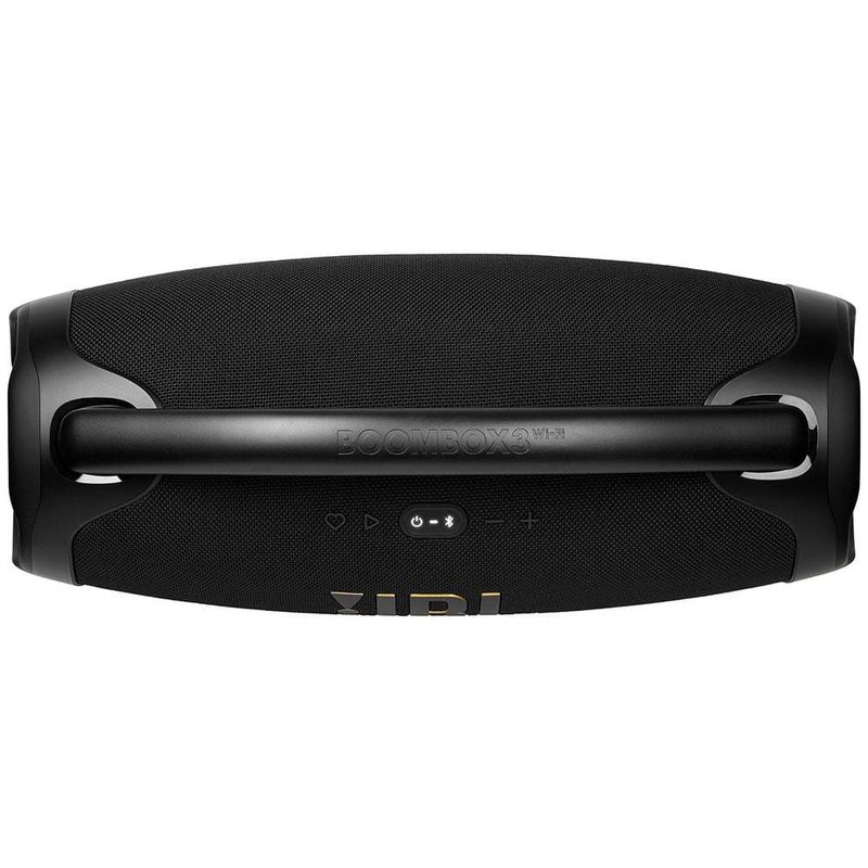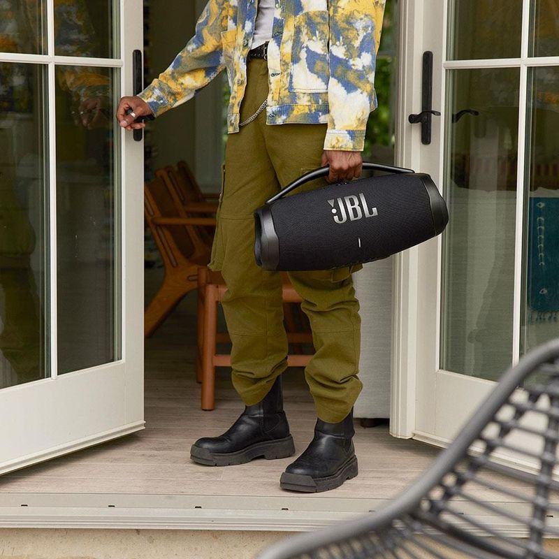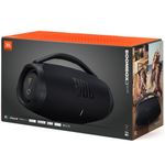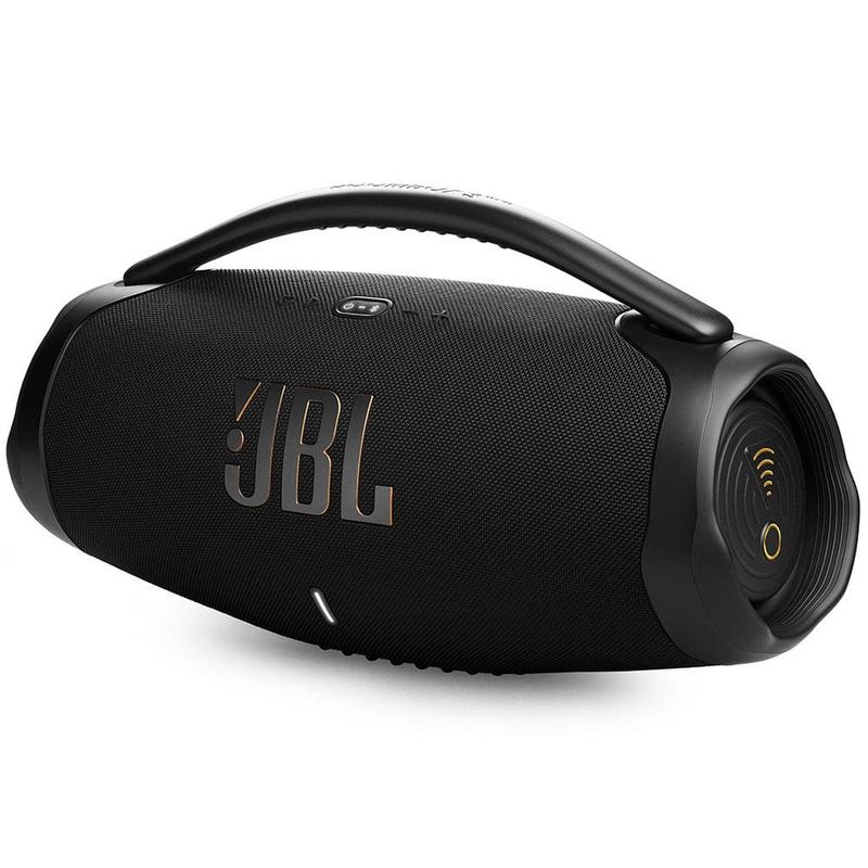 Com a Caixa de Som Portátil Boombox 3 Wi-Fi da JBL você vai conhecer uma verdadeira revolução no mundo do áudio portátil!Com um som potente e autêntico JBL Original Pro Sound, mergulhe em uma experiência sonora incomparável, onde os graves mais profundos ganham vida de forma surpreendente. Toque músicas de alta definição em qualquer lugar com o JBL Boombox 3, incluindo Dolby Atmos 3D, por meio de conexão Wi-Fi. E o melhor de tudo, mesmo enquanto atende chamadas ou navega pelas redes sociais, sua música continuará a tocar sem interrupções, graças à transição perfeita para o modo Bluetooth que garante que você continue curtindo experiências de áudio perfeitas, seja em ambientes internos ou externos.Sua bateria de longa duração oferece até 24 horas de reprodução contínua, garantindo que a trilha sonora das suas jornadas nunca acabe. Além disso, com seu design à prova d`água e resistente à poeira, você está sempre pronto para aventuras o dia todo.Explore um mundo de possibilidades musicais com a Caixa de Som JBL Boombox 3. Compatível com AirPlay, Alexa Multi-Room Music, Chromecast built-in™ e Spotify Connect, você tem acesso a uma variedade de opções para reproduzir suas músicas favoritas. Sintonize rádios da Internet, aproveite podcasts em alta definição e mergulhe no áudio imersivo que só a JBL pode proporcionar.Feito com materiais ecológicos, como tecido e plástico reciclados, cada nota que você ouve contribui para um mundo mais verde e sustentável.Adquira agora mesmo essa Caixa de Som Portátil Boombox 3 Wi-Fi da JBL e descubra um novo patamar de qualidade sonora!