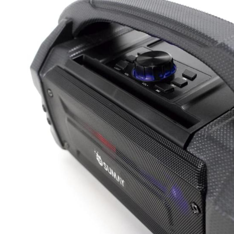 A Caixa de Som Portátil Sumay Sunbox CSP1304 é perfeita para os amantes de música que desejam desfrutar de sua playlist em qualquer lugar. Com um sistema de som de alta qualidade que oferece uma potência RMS de 50W, esta caixa de som proporciona uma experiência sonora excepcional. Além disso, sua característica leve e portátil facilita o transporte, permitindo que você leve sua música para qualquer ambiente. A bateria de longa duração, com até 6 horas de autonomia, garante que você possa curtir suas músicas por um período prolongado sem interrupções. A Caixa de Som Portátil Sunbox oferece diversas opções de conectividade, incluindo Bluetooth, USB, Rádio FM e entrada AUX. Isso significa que você pode reproduzir suas músicas sem fio através de dispositivos compatíveis com Bluetooth, conectar um pendrive ou dispositivo USB, sintonizar suas estações de rádio FM favoritas ou conectar um dispositivo de áudio externo através da entrada AUX. Uma característica adicional é a possibilidade de realizar karaokê, bastando conectar um microfone (não incluso) à Caixa de Som e soltar a voz. Essa funcionalidade amplia a diversão e oferece uma experiência de entretenimento completa. A Caixa de Som Portátil Sumay Sunbox CSP1304 coloca música e diversão na palma da sua mão, permitindo que você desfrute de suas músicas favoritas em alta qualidade sonora onde quer que esteja. Com a Caixa de Som Portátil Sumay Sunbox CSP1304, a música e a diversão estarão sempre na palma da sua mão, permitindo que você desfrute de uma experiência sonora imersiva e portátil em qualquer lugar que esteja. Dimensões:(L x A x C) 34,2 x 20,9 x 15,5cm (aprox.) Tamanho da embalagem(L x A x C) 34,5 x 22 x 16,5 cm (aprox.)Peso:líquido: 1,4kg Peso bruto: 1,5 kgCor:PretoPotência:RMS 50WSensibilidade:> 60dBConector:Bluetooth e TWSAlimentação:USB (adaptador não incluso)Pesquisa:caixa de som|caixa gallon|caixa music|sumay| • Funcionalidade: caixa de som portátil • Frequência de resposta: 90hz ~ 20khz • Alto-falante: 4”4? *2 • Compatibilidade: USB, rádio FM, microfone e AUX • Tempo de carregamento: aproximadamente 04h • Duração da bateria: até 6h (80% do volume) • Material: caixa em ABS, alto-falante com luz de LED colorida • Tipo de embalagem: caixa • Itens inclusos na embalagem: caixa de som portátil, cabo USB e manual do usuário
