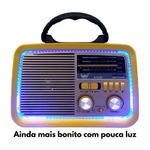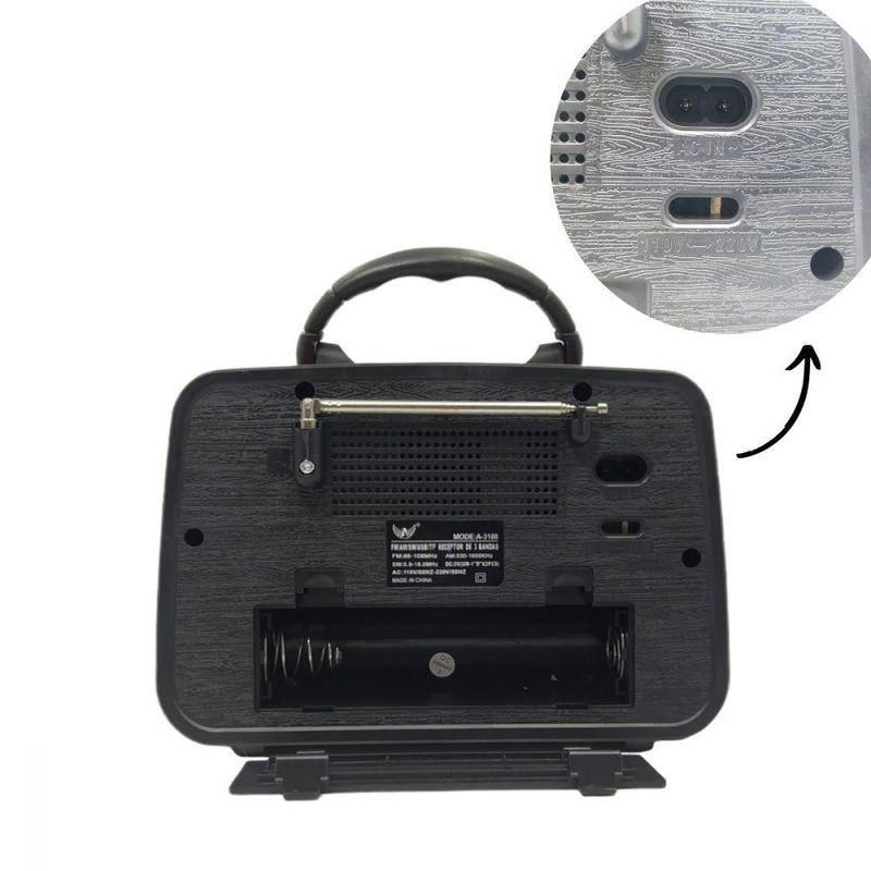 Caixa De Som Rádio Retrô 5w Com BluetoothCódigo de barras 7898822031882 Homologação Anatel 17913-21-14193 Rádio Retrô com Bluetooth AD-3188 Altomex O modelo AD-3188 é um rádio portátil com design clássico e acabamento retrô, ideal para quem busca uma peça funcional e decorativa. Ele oferece diversas opções de reprodução de áudio, incluindo rádio, conectividade Bluetooth e entradas para mídia externa. A estrutura é feita em plástico ABS, garantindo leveza e durabilidade. Especificações Técnicas: -Design: Estilo rádio retrô / vintage -Material: Plástico ABS -Potência de Saída: 5W -Alto-falante: 3 polegadas, com impedância de 4 ohms. -Bluetooth: Para reprodução de áudio sem fio a partir de smartphones, tablets e outros dispositivos. -USB: Entrada para pendrive. -Cartão de Memória: Entrada para cartão SD/TF. -Entrada Auxiliar (AUX): Conector de 3,5mm para cabo P2, permitindo a conexão de dispositivos com fio. -Rádio FM: 88 - 108 MHz e AM: 530 - 1600 KHz -SW (Onda Curta): 5.9 - 18 MHz -Sintonização: Analógica, através de um botão seletor e um mostrador tradicional. -Antena: Antena telescópica para melhor captação do sinal. -Alimentação AC: Bivolt com chave seletora, operando em 110V/60Hz ou 220V/50Hz. -Bateria Interna: Recarregável, com capacidade de 1200mAh. A autonomia pode variar, mas no modo rádio pode chegar a 8 horas, e no modo USB/cartão a cerca de 150 minutos. -Carregamento: Via cabo de alimentação AC incluso. -Lanterna: Lanterna LED embutida na lateral. -Alça de Transporte: Alça integrada para facilitar o transporte do aparelho. -Controles: Botões físicos para ligar/desligar, controle de volume, sintonização de rádio e seleção de modo (Bluetooth/Rádio/AUX/USB). Itens Inclusos na Embalagem 1x Cabo de alimentação 1x Manual de instruções em português Entrada - Cabo auxiliar - USB - Cartão de memória - Carregamento V8 Disponível nas cores: - Preto - Vermelho - Madeira clara - Madeira escura Medidas da embalagem: L: 10,0 x C: 21,0 x A: 16,0cm Peso do Produto: 930gCódigo de barras 7898822031882 Homologação Anatel 17913-21-14193 Rádio Retrô com Bluetooth AD-3188 Altomex O modelo AD-3188 é um rádio portátil com design clássico e acabamento retrô, ideal para quem busca uma peça funcional e decorativa. Ele oferece diversas opções de reprodução de áudio, incluindo rádio, conectividade Bluetooth e entradas para mídia externa. A estrutura é feita em plástico ABS, garantindo leveza e durabilidade. Especificações Técnicas: -Design: Estilo rádio retrô / vintage -Material: Plástico ABS -Potência de Saída: 5W -Alto-falante: 3 polegadas, com impedância de 4 ohms. -Bluetooth: Para reprodução de áudio sem fio a partir de smartphones, tablets e outros dispositivos. -USB: Entrada para pendrive. -Cartão de Memória: Entrada para cartão SD/TF. -Entrada Auxiliar (AUX): Conector de 3,5mm para cabo P2, permitindo a conexão de dispositivos com fio. -Rádio FM: 88 - 108 MHz e AM: 530 - 1600 KHz -SW (Onda Curta): 5.9 - 18 MHz -Sintonização: Analógica, através de um botão seletor e um mostrador tradicional. -Antena: Antena telescópica para melhor captação do sinal. -Alimentação AC: Bivolt com chave seletora, operando em 110V/60Hz ou 220V/50Hz. -Bateria Interna: Recarregável, com capacidade de 1200mAh. A autonomia pode variar, mas no modo rádio pode chegar a 8 horas, e no modo USB/cartão a cerca de 150 minutos. -Carregamento: Via cabo de alimentação AC incluso. -Lanterna: Lanterna LED embutida na lateral. -Alça de Transporte: Alça integrada para facilitar o transporte do aparelho. -Controles: Botões físicos para ligar/desligar, controle de volume, sintonização de rádio e seleção de modo (Bluetooth/Rádio/AUX/USB). Itens Inclusos na Embalagem 1x Cabo de alimentação 1x Manual de instruções em português Entrada - Cabo auxiliar - USB - Cartão de memória - Carregamento V8 Disponível nas cores: - Preto - Vermelho - Madeira clara - Madeira escura Medidas da embalagem: L: 10,0 x C: 21,0 x A: 16,0cm Peso do Produto: 930g