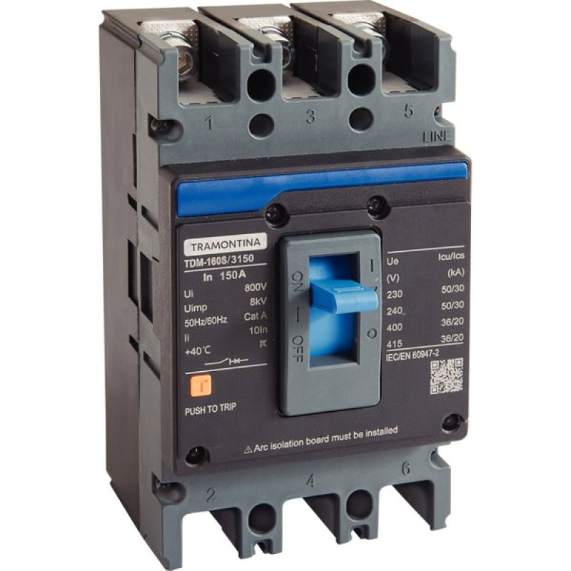 Caixa Moldada Tramontina TDM 160S 3150 3P 150A 50 kA Tramontina - A caixa moldada Tramontina TDM 160S 3150 3P 150 A 50 kA é a escolha ideal para garantir maior proteção para suas instalações elétricas. Ela tem as mesmas funções de proteção que os mini disjuntores, que protegem a rede contra sobrecargas e curto-circuitos. Ela possui informações gravadas na parte frontal e um botão de teste de sistema desarme, que está logo abaixo da manopla de acionamento. A caixa é ideal para utilização principalmente em correntes acima de 100 Amperes e vai deixar sua rede mais segura e com mais qualidade! Características Gerais do Produto: Garantia: • 3 Meses