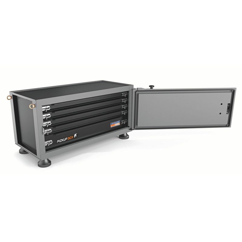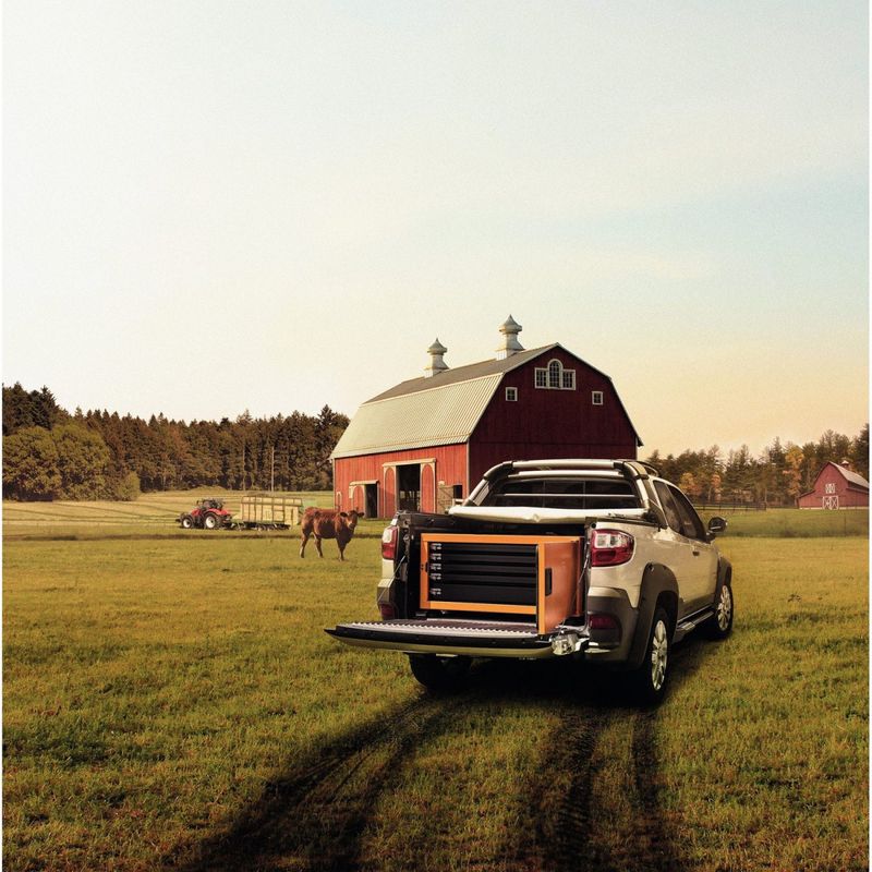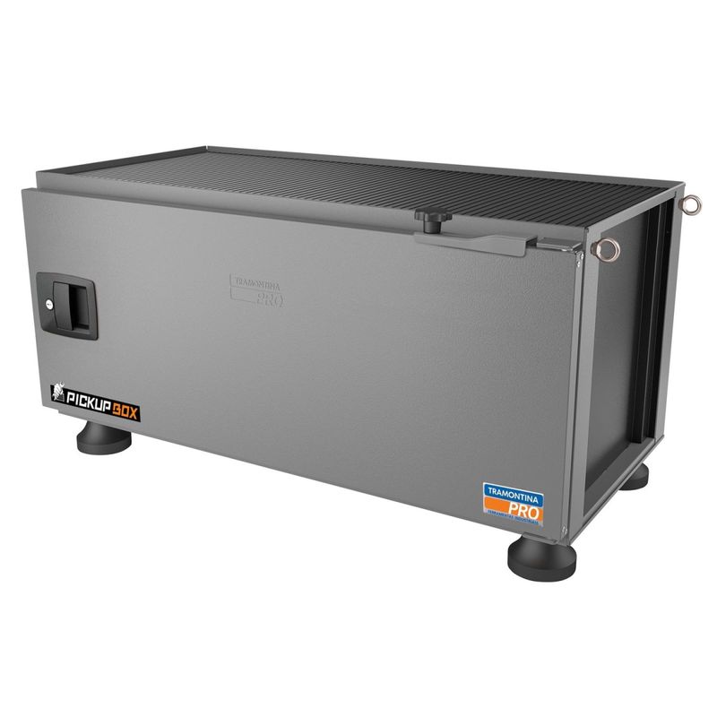 Caixa para Ferramentas Pickup Box 1000x500x500 mm Tramontina PRO Cinza Tramontina - Caixa para Ferramentas Pickup Box 1000x500x500 mm Tramontina PRO Cinza Projetada para facilitar a manutenção em campo, a caixa Pickup Box da Tramontina PRO encaixa perfeitamente na parte traseira de caminhonetes, o que proporciona mais flexibilidade, agilidade e redução de custos na manutenção de máquinas e equipamentos. O mecânico bota o pé na estrada e com as ferramentas em mãos, evita longos deslocamentos das fazendas até concessionárias ou oficinas de reparação. A caixa possui: 4 olhais para fixação da caixa na camionete, pés com sistema de amortecimento anti vibração (vibra stop), fechadura reforçada com chave, porta frontal com borracha de vedação que impede a entrada de poeira e água e dispositivo de trava da porta para locais com vento. Possui 5 gavetas com trancas individuais. Conta com mais de 1,8 metros quadrados de área para armazenamento de ferramentas, peças e acessórios para manutenção. A caixa pode ser personalizada quanto a cor e principalmente quanto a composição, que pode ser colocada em berços de EVA de 40 mm, deixando tudo no lugar durante o deslocamento. Estrutura em chapas de aço conformadas de 1,2 mm. 5 gavetas com corrediças telescópicas. Fechadura reforçada com chave. Porta com borracha de vedação contra poeira. Pintura eletrostática.Capacidade de carga máxima gavetas com altura de 50 mm: 30 kg. Capacidade de carga máxima gavetas com altura de 105 mm: 40 kg. 4 pés com sistema de amortecimento anti vibração (Vibra stop). Utilizado para o armazenamento de ferramentas e base de trabalho para manutenção de peças. Capacidade de carga e resistência da estrutura comprovadas através de testes práticos. Cuidados com o produto Use óculos, luvas e outros equipamentos de proteção individual (EPIs) de acordo com a tarefa a ser executada. Lubrificar as guias telescópicas das gavetas regularmente, para manter seu bom funcionamento. Não sobrecarregar as gavetas com peso excessivo. Respeite sua cidade e o meio ambiente, para descarte dos produtos e embalagens, siga as orientações de reciclagem vigentes. Garantia Garantia total contra vÃcios ou defeitos de fabricação. - - Características Gerais do Produto: Garantia: • 3 Meses