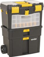 Caixa Plástica Para Ferramentas Baú 460x260x620mm Com RodasOrganize e transporte suas ferramentas com facilidade e segurança utilizando a Caixa Plástica Para Ferramentas da Vonder. Este baú robusto é ideal para armazenar ferramentas, peças e acessórios, garantindo que tudo esteja sempre ao seu alcance. Com uma estrutura reforçada, a caixa possui tampa com dois compartimentos, bandeja removível para ferramentas, bandeja frontal destacável com múltiplas divisórias, alça dobrável e rodas para facilitar o transporte. As travas reforçadas asseguram que seus itens estejam sempre protegidos.Feita de polipropileno, a caixa é resistente e durável, suportando até 25 kg de carga. A combinação de cores preta e amarela não só confere um visual moderno, mas também facilita a identificação em ambientes de trabalho. A ergonomia da alça e a facilidade de manuseio das rodas em diferentes superfícies tornam o transporte mais confortável, economizando tempo e esforço.ESPECIFICAÇÕES TÉCNICAS:- Marca: Vonder- Modelo: 7893946190866- Material: Plástico (Polipropileno)- Cor: Preta e amarela- Altura: 62 cm- Largura: 26 cm- Comprimento: 46 cm- Capacidade de carga: 25 kg- Peso da embalagem: 7900 g- Altura da embalagem: 66 cm- Comprimento da embalagem: 29 cm- Largura da embalagem: 48 cm- Inclui bandeja extensível: Não- Com alça: Sim- Com rodas: NãoITENS INCLUSOS:- 1 Caixa plástica para ferramentas