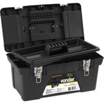 Caixa Plástica Ferramentas Baú 470x240x219mm Bandej VonderConteúdo da embalagem1 Caixa plásticaAplicações e dicas de usoIndicada para organizar, armazenar e transportar ferramentas, peças e acessórios em geralDestaques e diferenciaisPossui duas travas, três compartimentos externos (dois removíveis) e bandeja para ferramentas removívelDETALHES TÉCNICOS Comprimento da caixa plástica 470,0 mm Largura da caixa plástica: 240,0 mm Altura da caixa plástica: 219,0 mm Material da caixa plástica: Polipropileno Cor da caixa plástica: Preta e amarela Capacidade de carga: 12 kg Produto: Caixa | Com rodas: Não | Inclui bandeja extensível: Sim | Material: Plástico | Com alça: Sim | Condição do item: Novo | É kit: Não