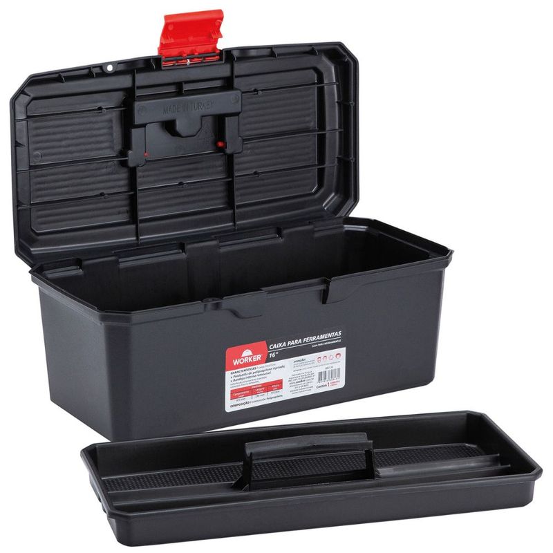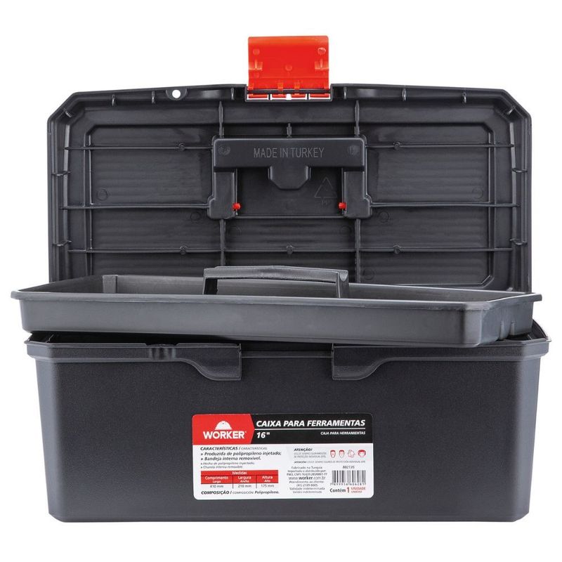 Caixa Plástica Para Ferramentas 16'' Worker: Organize e Transporte Suas Ferramentas com Segurança Mantenha suas ferramentas organizadas, protegidas e sempre à mão com a Caixa Plástica Para Ferramentas 16'' da Worker. Fabricada em polipropileno injetado de alta resistência, esta caixa oferece durabilidade e confiabilidade para o uso diário, seja você um profissional ou um entusiasta do faça você mesmo. A bandeja interna removível permite separar e organizar diferentes tipos de ferramentas, facilitando o acesso e evitando que se danifiquem durante o transporte. Com 410mm de comprimento, 210mm de largura e 175mm de altura, o tamanho da caixa é ideal para acomodar uma variedade de ferramentas, desde chaves e alicates até furadeiras e parafusadeiras. Leve suas ferramentas com praticidade e segurança para qualquer lugar, garantindo que você esteja sempre preparado para qualquer trabalho. Invista em organização e eficiência com a Caixa Plástica Worker! Especificações Material: Polipropileno injetado Comprimento: 410mm Largura: 210mm Altura: 175mm Bandeja interna: Removível Itens Inclusos 1 Caixa Plástica Para Ferramentas 16'' Com Bandeja Worker Perguntas Frequentes (FAQ) Pergunta: Qual o material de fabricação da caixa?Resposta: A caixa é fabricada em polipropileno injetado, um material resistente e durável. Pergunta: A bandeja interna é removível?Resposta: Sim, a bandeja interna é removível, permitindo organizar as ferramentas de forma mais eficiente. Pergunta: Qual a garantia do produto?Resposta: A garantia do produto é de 3 meses. Garantia legal: 90 dias Pergunta: Qual o tamanho da caixa?Resposta: A caixa possui 410mm de comprimento, 210mm de largura e 175mm de altura.