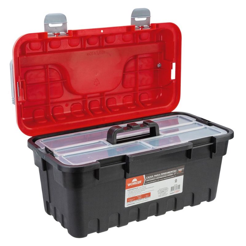 Código do Fornecedor: 882089 Marca: Worker Conteúdo da embalagem: 1 Caixa Plástica Para Ferramentas 21'' Com Bandeja Worker Detalhes técnicos: Extremamente reforçadaFabricada em polipropileno injetado1 Bandeja interna removível com organizadoresComprimento: 21" - 535mmLargura 276mmAltura: 267mm Garantia: 3 meses