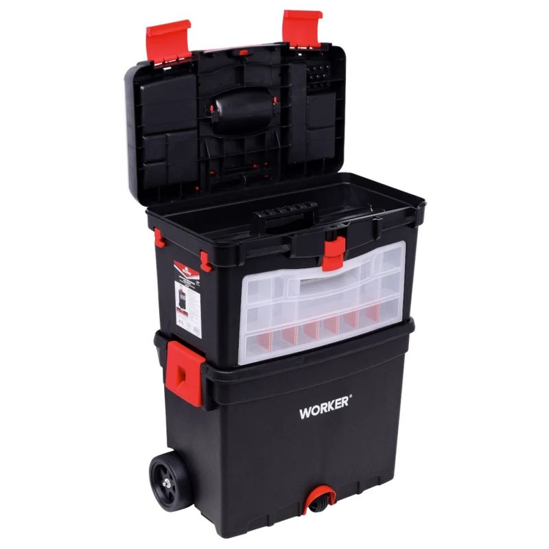 Caixa Organizadora de Ferramentas com Rodas Worker – Mobilidade e Praticidade Organize suas ferramentas com a Caixa Organizadora de Ferramentas com Rodas da Worker! Projetada para profissionais e entusiastas, esta caixa plástica robusta oferece a solução ideal para transportar e armazenar seus equipamentos com segurança e facilidade. Fabricada em polipropileno injetado de alta resistência, garante durabilidade e proteção contra impactos. A bandeja interna removível permite separar ferramentas e acessórios, otimizando o espaço e facilitando o acesso. Os dois compartimentos na tampa são perfeitos para guardar peças pequenas, evitando perdas e mantendo tudo organizado. As rodas e a alça dobrável proporcionam mobilidade, tornando o transporte da caixa muito mais confortável, mesmo quando carregada. Com 460mm de comprimento, 260mm de largura e 620mm de altura, oferece amplo espaço interno para acomodar uma grande variedade de ferramentas. Inclui um organizador e duas bandejas internas removíveis para uma organização ainda mais eficiente. Invista na praticidade e mantenha suas ferramentas sempre à mão e protegidas com a Caixa Organizadora Worker. Especificações Material: Polipropileno injetado Comprimento: 460mm Largura: 260mm Altura: 620mm Itens Inclusos 1 Caixa Plástica Para Ferramentas 24,5'' Com Rodas Worker Perguntas Frequentes (FAQ) Pergunta: A caixa é resistente?Resposta: Sim, a caixa é fabricada em polipropileno injetado de alta resistência, garantindo durabilidade e proteção contra impactos. Pergunta: A bandeja interna é removível?Resposta: Sim, a caixa possui uma bandeja interna removível para facilitar a organização e o acesso às ferramentas. Pergunta: Qual o período de garantia do produto?Resposta: A garantia do produto é de 3 meses. Garantia legal: 90 dias