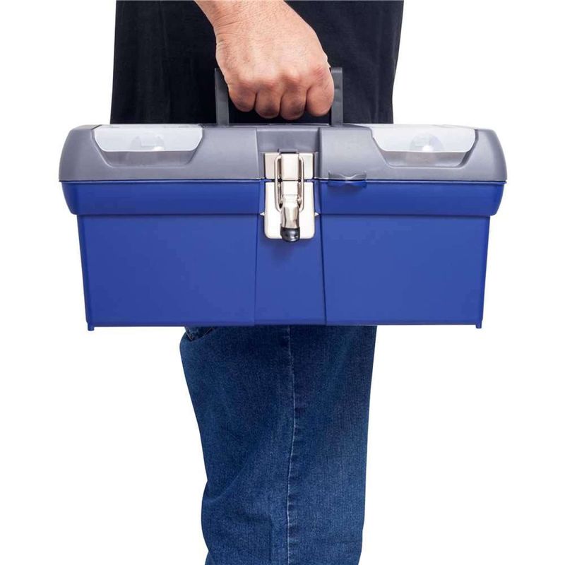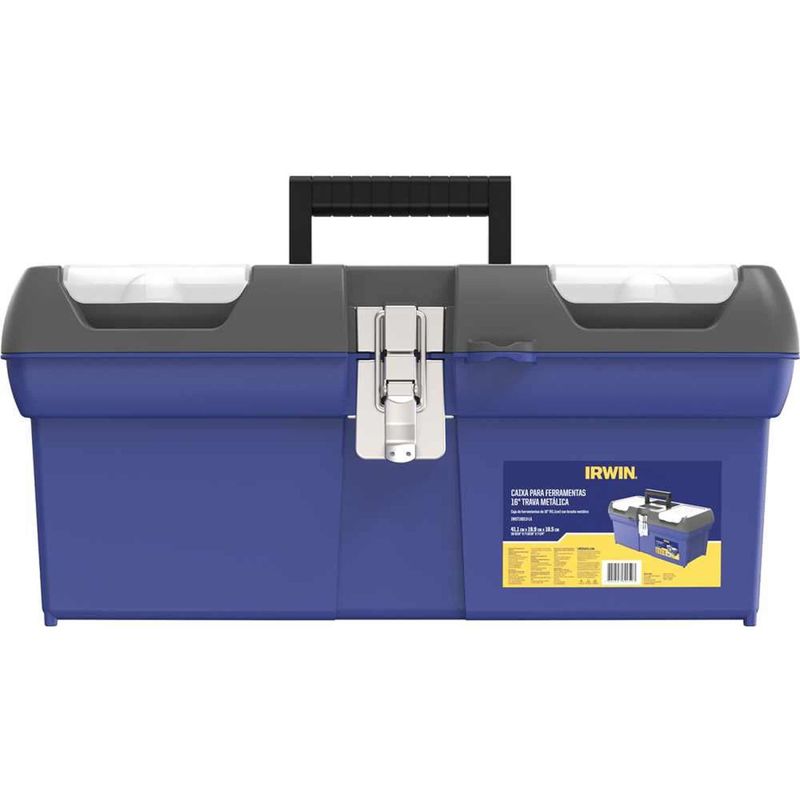 Caixa Plástica Para Ferramentas, 41 cm x 18 cm x 20 cm, Iwst16013-la Irwin - Conteúdo da embalagem: 1 Caixa plástica para ferramentas. Aplicação: Indicada para organizar, armazenar e transportar ferramentas, peças e acessórios em geral. Destaques: Possui travas metálicas, bandeja interna e organizadores com tampa translúcida, além de alça dobrável. Garantia - E (CDC): Garantia legal: 90 dias Referência: IWST16013-LA Modelo: IWST16013-LA Material: Polipropileno (PP) Cor da caixa: Azul Comprimento: 410 mm Largura: 180 mm Altura: 200 mm Massa aproximada (peso): 1,27 kg Destaques Comercial: Possui travas metálicas, bandeja interna e organizadores com tampa translúcida, além de alça dobrável. Aplicação Comercial: Indicada para organizar, armazenar e transportar ferramentas, peças e acessórios em geral. Características Gerais do Produto: Garantia: • 3 Meses