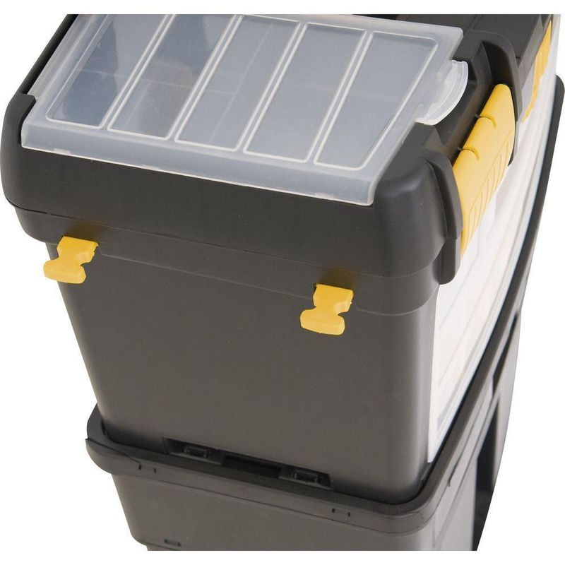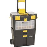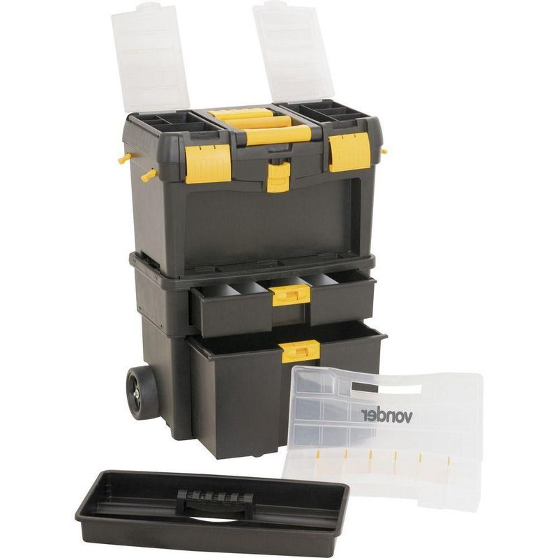 Caixa Plástica Para Ferramentas Baú 460x260x620mm Com RodasCaixa Plástica Para Ferramentas Baú 460x260x620mm Com RodasOrganize e transporte suas ferramentas com facilidade e segurança utilizando a Caixa Plástica Para Ferramentas da Vonder. Este baú robusto é ideal para armazenar ferramentas, peças e acessórios, garantindo que tudo esteja sempre ao seu alcance. Com uma estrutura reforçada, a caixa possui tampa com dois compartimentos, bandeja removível para ferramentas, bandeja frontal destacável com múltiplas divisórias, alça dobrável e rodas para facilitar o transporte. As travas reforçadas asseguram que seus itens estejam sempre protegidos.Feita de polipropileno, a caixa é resistente e durável, suportando até 25 kg de carga. A combinação de cores preta e amarela não só confere um visual moderno, mas também facilita a identificação em ambientes de trabalho. A ergonomia da alça e a facilidade de manuseio das rodas em diferentes superfícies tornam o transporte mais confortável, economizando tempo e esforço.ESPECIFICAÇÕES TÉCNICAS:- Marca: Vonder- Modelo: 7893946190866- Material: Plástico (Polipropileno)- Cor: Preta e amarela- Altura: 62 cm- Largura: 26 cm- Comprimento: 46 cm- Capacidade de carga: 25 kg- Peso da embalagem: 7900 g- Altura da embalagem: 66 cm- Comprimento da embalagem: 29 cm- Largura da embalagem: 48 cm- Inclui bandeja extensível: Não- Com alça: Sim- Com rodas: NãoITENS INCLUSOS:- 1 Caixa plástica para ferramentas Produto: Caixa | Com rodas: Não | Inclui bandeja extensível: Não | Material: Plástico | Com alça: Sim | Condição do item: Novo | É kit: Não