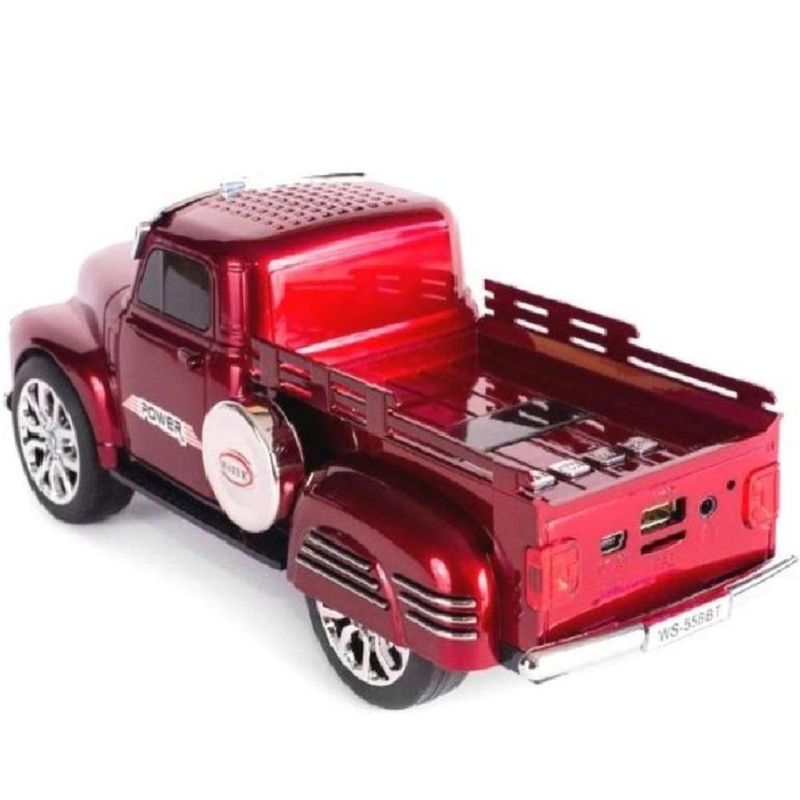 Caixa De Som Portátil Tipo Caminhonete com Carroceira Bluetooth Usb, Radio vermelho - xtrad WS-558BT Caixa de som estilo caminhonete, ótimo para decoração e para quem gosta de coleção é um ótima opção. Ouça um som limpo e marcante. Alegre seu ambiente com esta linda caixinha. Conecte qualquer dispositivo via conexão sem fio blue-connect, cartão sd, entrada usb, auxiliar e Rádio fm. Não dependa só de conexão recarregue a bateria interna e a desfrute. Pode ser utilizada em Notebooks, PCs, Celulares, MP4, etc - Auto falante no teto e no assoalho. - fm Stereo com salvação de estação. - Acende os faróis e lanternas traseiras enquanto estiver ligado. - Entrada USB para pendrive e outros. - Entrada para cartão micro usd. - Entrada para cabo usb. - Entrada para fone de ouvido ou cabo P2. Botões Multifunções: - Avanço/Volume ( + ) - Pausa/Scan fm - Retrocesso/Volume (-) - Liga/Desliga/Modo de Seleção: Rádio/MP3/Auxiliar Dimensões: Alt. 10cm X Comp. 28cm X Larg. 11cm Tempo em uso aproximadamente 4hs Itens - 01 Caixa de som estilo Caminhonete - 01 Cabo para carregar Cor: Vermelho Marca: Xtrad