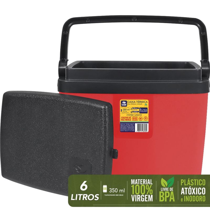 Caixa Térmica 6 Litros Bel: Mantenha Seus Alimentos e Bebidas Frescos em Qualquer Lugar Desfrute de momentos mais saborosos e práticos com a Caixa Térmica de 6 Litros da Bel! Projetada para acompanhar você em todas as suas aventuras – da praia ao churrasco, do acampamento ao piquenique – esta caixa térmica garante que suas bebidas e alimentos permaneçam frescos por mais tempo. Com capacidade para até 8 latinhas de 350ml, você terá sempre à mão suas bebidas geladas favoritas. Fabricada com polipropileno 100% virgem, a Caixa Térmica Bel é totalmente atóxica e livre de BPA, assegurando o armazenamento seguro dos seus alimentos e evitando a transferência de odores. O isolamento térmico de alta qualidade, proporcionado pelo Poliestireno Expandido (EPS), mantém a temperatura ideal por horas, enquanto a tampa com trava de segurança e a alça ergonômica garantem um transporte fácil e confortável. Além de funcional, seu design moderno em vermelho e preto a torna um acessório estiloso para qualquer ocasião. A limpeza é simples e rápida, tornando-a perfeita para o uso diário e para quem busca praticidade sem abrir mão da qualidade. Especificações Capacidade: 6 Litros Dimensões: 28 cm x 20,5 m x 24,5 cm Material: Polipropileno 100% virgem e Poliestireno Expandido (EPS) Itens Inclusos Caixa Térmica 6 Litros Vermelha e Preta Bel Perguntas Frequentes (FAQ) Pergunta: Qual a capacidade da Caixa Térmica Bel?Resposta: A Caixa Térmica Bel possui capacidade de 6 Litros, comportando até 8 latinhas de 350ml (sem gelo). Pergunta: A Caixa Térmica é segura para armazenar alimentos?Resposta: Sim, a Caixa Térmica Bel é fabricada com polipropileno 100% virgem, livre de BPA, garantindo o armazenamento seguro dos alimentos. Pergunta: Qual o tempo de conservação da temperatura?Resposta: O tempo de conservação da temperatura varia de acordo com as condições externas e a quantidade de gelo utilizada. O isolamento térmico de qualidade do Poliestireno Expandido (EPS) ajuda a manter a temperatura por longos períodos. Pergunta: Possui garantia?Resposta: Garantia legal: 90 dias