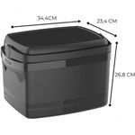 Caixa Térmica Cooler 12l Soprano PretoEsse cooler contém 12L. É Ideal para transportar os alimentos e bebidas em seus momentos de lazer. Para quem quer praticidade no seu dia a dia! Sistema prático de abertura e tampa removível com porta-copos numerados, Alças laterais embutidas e alça superior retrátil que trava a tampa. Pode ser usada como mesa de apoio auxiliar. Boa eficiência térmica (superior a 8 horas) . Capacidade 12 litros: 12 latas de 350 ml Comprimento 36 cm Largura 27 cm Altura 25 cm Peso aproximado: 1,15 kg Tempo de degelo total: 13 horas (Considerando 20% da Capacidade em gelo) Dicas e instruções de uso: - Nunca lave o produto por imersão, cuide para não danificar o isolamento térmico; - Não aplicar carga (peso) acima do especificado; - Produto atóxico; - Transportar sempre com a tampa fechada; - Não utilizar objetos abrasivos como esponja de aço, fibras abrasivas ou similares para sua limpeza; - Limpeza interna: se houver cheiro em seu interior, lave-o com água e sabão neutro; - Posteriormente, deve-se encher o produto com uma solução de água com uma colher de sopa de Bicarbonato de Sódio; - Limpeza externa: deve ser executada com sabão, ou detergente e esponja e água; - Não colocar objetos pontiagudos sem a devida proteção; - Os alimentos devem ser sempre embalados, evitando o direto com o interior da caixa; - A vida útil do produto está diretamente relacionada aos cuidados tomados durante seu uso, armazenagem e .ESPECIFICAÇÕES:Capacidade:Latas de 350 ml - 18 UnidadesLatas de 473 ml - 12 UnidadesMarca:SopranoIndividual - CxLxA (cm): 34,4x23,4x26,8Alça Retrátil: SimCor: Preta