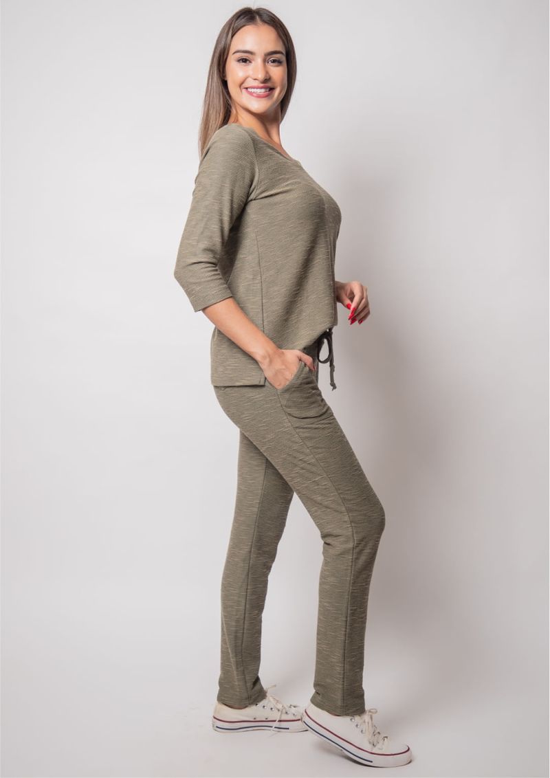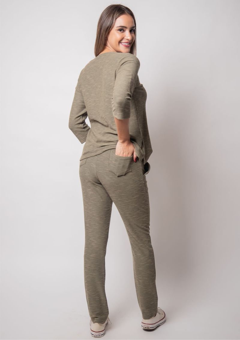 Calça sem estampa, na cor Verde, com cintura média-alta. Calça Básica em Malha Texturizada. Possui bolsos frontais e traseiros. Modelagem soltinha ao corpo. Calça moderna e confortável. Permita-se! Composição do Tecido: Confeccionado em 76% Viscose, 23% Algodão e 1% Elastano. Toque macio. Medidas Aproximadas: P: 102 x 82 x 61 x 100 cm (Comprimento, Cintura, Gancho e Quadril). M: 104 x 86 x 63 x 106 cm (Comprimento, Cintura, Gancho e Quadril). G: 106x 92 x 65 x 112 cm (Comprimento, Cintura, Gancho e Quadril). GG: 108 x 98 x 67 x 118cm (Comprimento, Cintura, Gancho e Quadril). XL: 110 x 104 x 69 x 124 cm (Comprimento, Cintura, Gancho e Quadril). Todos os dados informados são aproximados, do peso às medidas. ATENÇÃO PARA AS MEDIDAS.