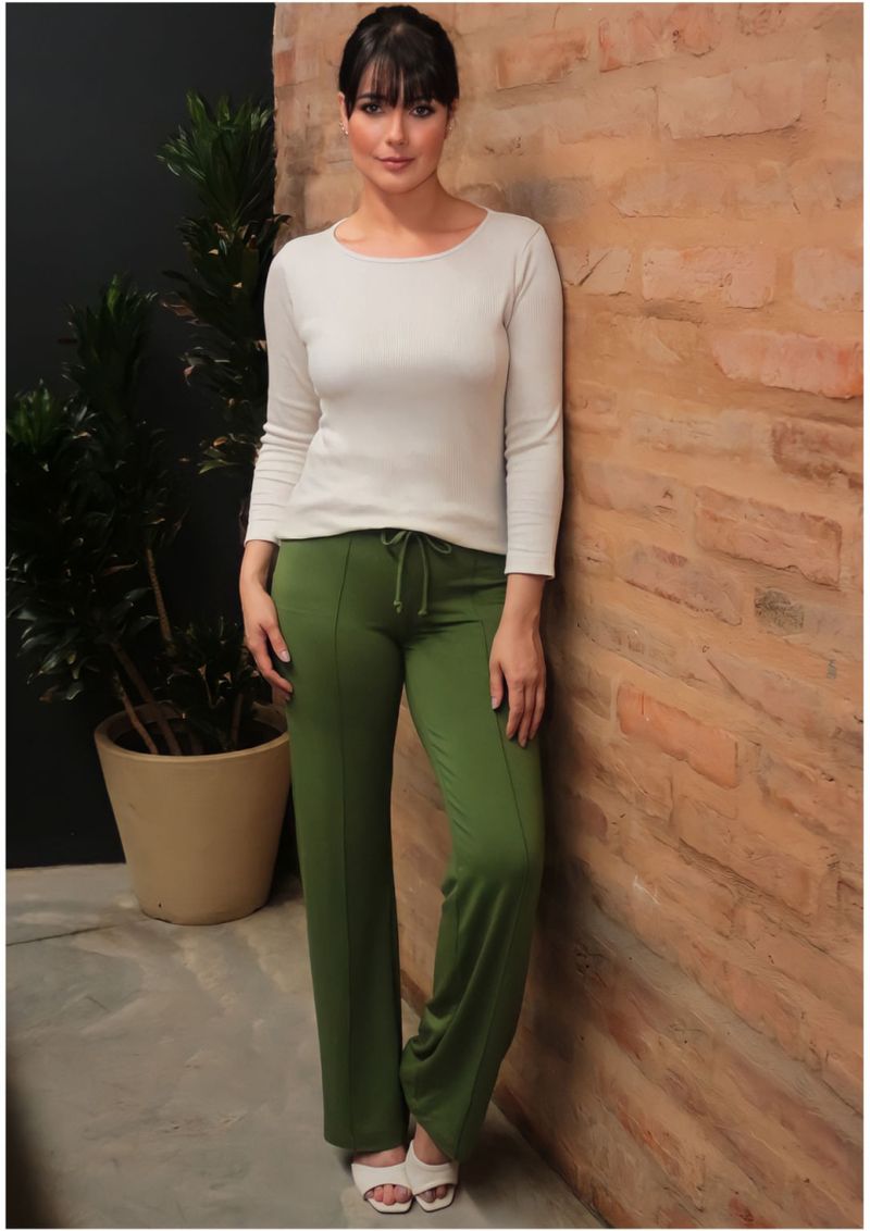 Calça cintura média-alta, sem estampa, na cor Verde. Calça com cós-elástico e ajuste através de cordão - tipo Pantalona. Possui bolsos traseiros e detalhe de vinco frontal. Modelagem moderna e confortável. Malha bastante flexível e ajustável. Permita-se! Composição Malha: Confeccionado em 94% Viscose e 6 % Elastano. Moletinho, com toque macio. Medidas Aproximadas: P: 108 x 84 x 60 x 100 cm (Comprimento, Cintura, Gancho e Quadril). M: 110 x 90 x 62 x 106 cm (Comprimento, Cintura, Gancho e Quadril). G: 112 x 96 x 64 x 112 cm (Comprimento, Cintura, Gancho e Quadril). GG: 114 x 102 x 66 x 118 cm (Comprimento, Cintura, Gancho e Quadril). XL: 116 x 108 x 68 x 124 cm (Comprimento, Cintura, Gancho e Quadril). Todos os dados informados são aproximados, do peso às medidas. ATENÇÃO PARA AS MEDIDAS. MODELAGEM AMPLA.