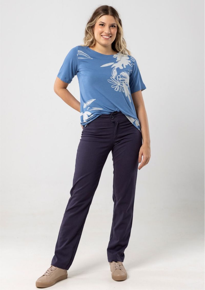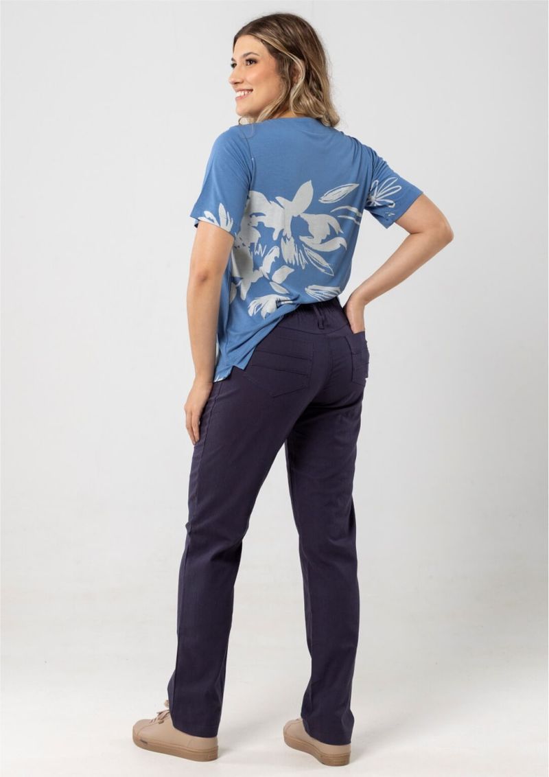 Calça comprida com cintura médio-alta e pequeno elástico no cós. Calça em sarja “adamascada”, na cor Azul Marinho. Fechamento através de zíper e botão. Possui 2 bolsos traseiros e 2 bolsos frontais. Modelagem moderna e confortável. Composição do tecido: Confeccionado em 68 % Algodão, 29% Poliéster e 3% Elastano. Construído em tecido com toque macio. Medidas Aproximadas: P: 106 x 80 x 65 x 98 cm (Altura, Cintura, Gancho e Quadril). M: 108 x 86 x 67 x 104 cm (A, C, G, Q). G: 110 x 92 x 69 x 110 cm (A, C, G, Q). GG: 112 x 98 x 71 x 116 cm (A, C, G, Q). XL: 114 x 114 x 73 x 122 cm (A, C, G, Q). Todos os dados informados são aproximados, do peso às medidas.