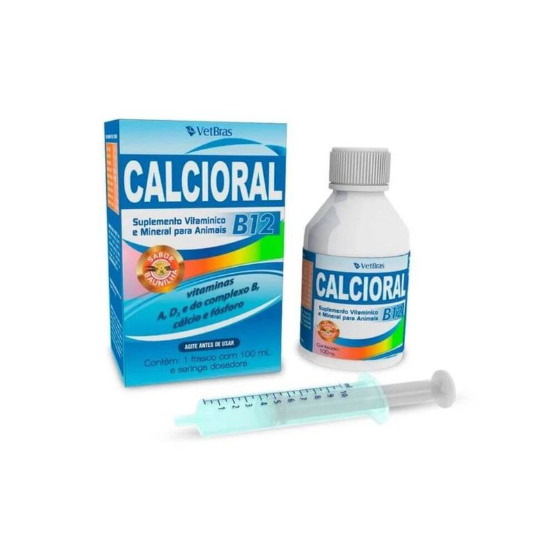 Indicações de uso: Calcioral B12 é um suplemento vitamínico e mineral indicado para animais de pequeno, médio e grande portes, em todos os casos em que seja necessária a suplementação dos minerais Cálcio e Fósforo e das Vitaminas A, D3, B1, B2, B6 e B12, como na lactação das fêmeas, no complemento alimentar dos filhotes em crescimento, no reforço alimentar de animais de esportes e na complementação cálcica e vitamínica dos animais mais idosos (geriatria). Níveis de garantia por litro do produto Calcioral B12: Cálcio (Mínimo)................................................50g Cálcio (Máximo)...............................................55g Fosforo (Mínimo)...........................................23,4g Vitamina A (Mínimo)...........................300.000 UI Vitamina B1 (Mínimo).................................200mg Vitamina B12 (Mínimo)..........................6.000mcg Vitamina B2 (Mínimo).................................170mg Vitamina B6 (Mínimo).................................150mg Vitamina D3 (Mínimo)..........................480.000 UI Modo de usar: Administrar Calcioral B12 por via oral, diretamente na boca do animal ou misturado na água ou alimento, nas seguintes dosagens: Animais de pequeno porte: Filhotes (até 3kg): administrar 2ml de Calcioral B12 para cada kg de peso corporal, continuamente ou até o completo restabelecimento do animal. Adultos (até 10kg): administrar 1ml de Calcioral B12 para cada kg de peso corporal, continuamente, ou até o completo restabelecimento do animal. Em lactação: administrar 2ml de Calcioral B12 para cada kg de peso corporal, continuamente, ou até o completo restabelecimento do animal. Animais de médio porte: Filhotes (até 10 kg): administrar 1ml de Calcioral B12 para cada kg de peso corporal, continuamente ou até o completo restabelecimento do animal. Adultos (até 40kg): administrar 1ml de Calcioral B12 para cada 5kg de peso corporal, continuamente ou até o completo restabelecimento do animal. Em lactação: administrar 2ml de Calcioral B12 para cada 5kg de peso corporal, continuamente, ou até o completo restabelecimento do animal. Animais de grande porte: Filhotes (até 150kg): administrar 1ml de Calcioral B12 para cada 5kg de peso corporal, continuamente ou até o completo restabelecimento do animal. Adultos: administrar 1ml de Calcioral B12 para cada 10kg de peso corporal, continuamente ou até o completo restabelecimento do animal. Em lactação: administrar 1ml de Calcioral B12 para cada 5kg de peso corporal, continuamente ou até o completo restabelecimento do animal. Tenha seu animal forte, saudável e desenvolvido com o mais completo suplemento do mercado: Calcioral B12! Suplemento Vitamínico e Mineral indicado para animais de pequeno, médio e grande portes, em todos os casos em que seja necessária a suplementação dos minerais Cálcio e Fósforo e das Vitaminas A, D3, B1, B2, B6 e B12, como na lactação das fêmeas, no complemento alimentar dos filhotes em crescimento, no reforço alimentar de animais de esportes e na complementação cálcica e vitamínica dos animais mais idosos (geriatria). Adquira agora mesmo o seu Calcioral B12 e traga seu animal de volta à rotina, garantindo a sua lucratividade! Confira!!