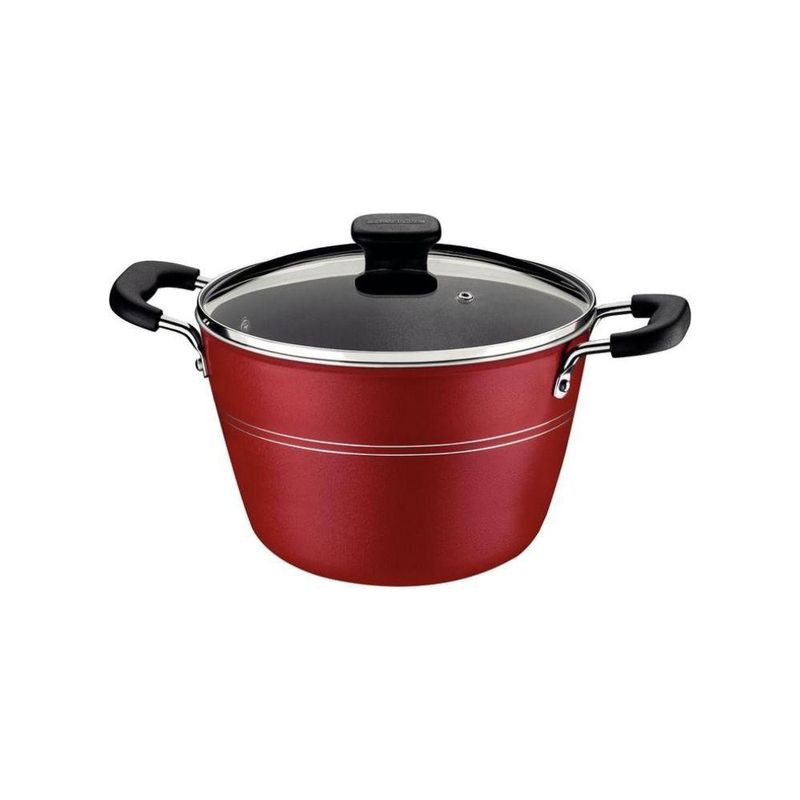 Para cozinhar em grande quantidade com muito mais praticidade e qualidade, o caldeirão Tramontina Sicília em alumínio com revestimento interno e externo em antiaderente Starflon Excellent vermelho com tampa de vidro 24 centímetros de diâmetro 5,7 litros é indispensável! Ele é produzido em alumínio com espessura de 3 milímetros e conta com revestimento interno e externo de antiaderente Starflon Excellent, dois atributos que proporcionam o cozimento rápido e uniforme dos alimentos, evitam que eles grudem em sua superfície, e devido a isso, também o tornam fácil de limpar. As alças e o pegador da tampa de vidro são em baquelite antitérmico, material que não aquece e deixa o manuseio muito mais seguro. Com ele, você garante maior praticidade, pois além de tudo, pode ir à máquina de lavar louças. Escolha Tramontina e veja a transformação acontecer na sua cozinha!Descrição técnicaCorpo de alumínio com espessura de 3,0 mm que proporciona cozimento rápido e uniforme. Revestimento interno e externo de antiaderente Starflon Excellent que não gruda, é fácil de limpar, mais durável, não é prejudicial a saúde e é livre de PFOA.Tampa de vidro temperado, com saída de vapor e borda de aço inox. Alças e pegador de baquelite antitérmicos que oferecem segurança durante o manuseio. Pode ir à máquina de lavar louças facilitando seu dia a dia.Orientação GeralA capacidade volumétrica máxima para cozimento é de 3/4 da capacidade total da peça. Posicione as alças do utensílio voltado ao centro do fogão. Em fogões com grade, centralize a peça e alinhe as alças com a grade. Utensílios quentes devem estar fora do alcance das crianças. Este produto não pode sofrer modificações. Antes do primeiro uso, lave com esponja macia, sabão neutro ou detergente líquido. Depois de secar, unte a área interna com óleo ou gordura e leve ao fogo por um ou dois minutos. Deixe esfriar e lave novamente. Seu utensílio Starflon está pronto para uso com ou sem gordura, sempre em fogo baixo ou médio (nunca superior a 260ºC).Para mexer os alimentos use somente utensílios de silicone, nylon ou madeira.Limpeza: Evite a imersão do utensílio quente em água fria.Nunca utilize produtos abrasivos na lavagem. Se deixar queimar alimentos, umedeça a área e reserve até que possa remover os resíduos grudados com esponja e sabão. Para descarte do produto e embalagem siga as orientações de reciclagem vigentes. Este produto não necessita de manutenção, apenas limpeza.Garantia do produto: 90 dias de garantia de acordo com o Código de Defesa do Consumidor + a Garantia do FabricanteProduto com certificação compulsória certificada pelo OCP 0070, registro 009649/2019, modelo caldeirão e classificação de antiaderência A (ótima), conforme portaria INMETRO 419/2012.