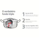 Prepare deliciosas receitas!Esse caldeirão, da Tramontina, é feito totalmente em aço inox, não soltando nenhum resíduo nos alimentos, mantendo-os saudáveis. Seu desenho limpo e sem cantos torna a limpeza muito mais fácil. O fundo triplo do caldeirão (aço inox + alumínio + aço inox) distribui o calor uniformemente, proporcionando um cozimento mais rápido e uniforme, economizando energia e deixando os alimentos aquecidos por mais tempo. Além disso, pode ser utilizado nos seguintes fogões: indução, gás, elétrico e vitrocerâmico. O caldeirão conjuga design com tecnologia de ponta de fabricação, além de praticidade, estilo, bom gosto e beleza!