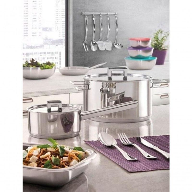 Caldeirão Tramontina Brava 24cm Em Aço Inox Perfeita para quem aprecia a misturade traços modernos com a elegância do clássico aço inox. Esta é a proposta dalinha Brava, com panelas ideais para aquelas comidinhas tradicionais do dia adia.Recomendações de Uso:Antes do uso: remova as eventuais etiquetas e lave-o com água quente, detergente e esponja macia. Outros tipos de produto como palha de aço, poderão riscar ou prejudicar o acabamento da peç de uso: não deixe o caldeirão vazio sobre uma fonte de calor. Use uma fonte de calor brando para evitar que o alimento grude no fundo do caldeirão. O fundo triplo distribui uniformemente o calor, não sendo necessário o fogo alto. E, além disso, economiza energia. Quando o caldeirão for utilizado no fogão a gás, a chama não deve ultrapassar a base do caldeirão. No caso de uso de chapa elétrica, a chapa deverá ter diâmetro igual ou inferior ao do caldeirão. Sempre dissolva o sal em água fervendo ou com os alimentos, mexendo os ingredientes no início do cozimento. Não aqueça o alimento colocando um caldeirão do mesmo diâmetro sobre o outro. Esse procedimento é perigoso, pois cria vácuo e impossibilita a retirada do mesmo. Se a tampa do caldeirão ficar presa pelo efeito do vácuo durante o resfriamento, basta puxar ou aquecer novamente até neutralizar o efeito do vácuo. As alças de inox aquecem durante o cozimento. Aconselhamos o uso de luvas durante o manuseio. Alguns alimentos que possuem amido, como massa e arroz, poderão deixar manchas na parte interna do caldeirão durante o cozimento. Deixe caldeirões quentes somente em superfícies resistentes ao calor. Pode ir ao forno em temperatura máxima de 260°C, podendo haver mudança na coloraçãós o uso: para remover facilmente as manchas, passe um pano umedecido com suco de limão ou vinagre. Evite deixar alimento no caldeirão por muito tempo o sal também pode provocar manchas. Para que o caldeirão de aço inox fique sempre bonito e com brilho, recomendamos que seja lavado somente com detergente e esponja. Depois da lavagem, sempre que possível, enxágue o caldeirão com água quente e seque-o imediatamente, para que ele mantenha o brilho , pois o cloro e as substâncias contidas na água podem deixar manchas no caldeirão. Não guarde a peça em locais úmidos. A umidade também provoca manchas. Para manter o brilho, a Tramontina desenvolveu uma pasta especial para polir e remover manchas nos produtos de aço inox, que está disponível nos principais pontos de venda (94537000).- Foto meramente ilustrativa.Informações Adicionais:- Totalmente feito de aço inox, por isso não solta nenhum resíduo nos alimentos, mantendo-os saudáveis.- Altamente durável, mantém suas características , preservando a beleza, a higiene e a durabilidade do material.- O fundo triplo (aço inox + alumínio + aço inox) distribui o calor uniformemente, proporcionando um cozimento mais rápido e uniforme, economizando energia e deixando os alimentos aquecidos por mais tempo.- Pode ir ao forno para gratinar ou finalizar pratos, na temperatura máxima de 260°C.- Acabamento em alto brilho.- desenho limpo e sem cantos Torna a limpeza mais fácil.- Tampa com saída de vapor e encaixe perfeito.- Pode ser utilizado em fogão a gás, elétrico, vitrocerâmico e indução.- Pode ser lavado diariamente Na máquina de lavar louças.