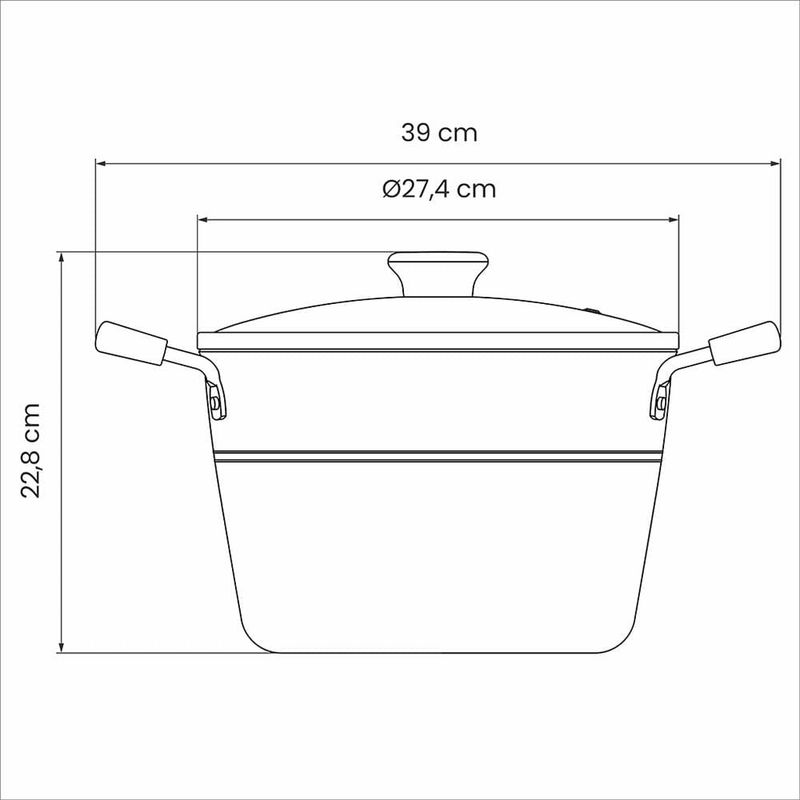 Alta Capacidade e Cozimento RápidoO Caldeirão Tramontina Sicília Avelã de 26 cm é ideal para o preparo de caldos, cremes, sopas e outras receitas em grandes quantidades. Com 7,6 litros de capacidade, é fabricado em alumínio com espessura de 3 mm, proporcionando aquecimento rápido e uniforme. Seu revestimento interno e externo em antiaderente Starflon Excellent evita que os alimentos grudem, facilita a limpeza e garante mais durabilidade.Conforto, Segurança e Praticidade no UsoCom tampa de vidro temperado com saída de vapor, alças e pegador em baquelite antitérmico, o caldeirão oferece manuseio seguro e confortável, mesmo durante o preparo em altas temperaturas. O acabamento na elegante cor avelã combina funcionalidade com estilo, e sua compatibilidade com máquina de lavar louças torna o dia a dia na cozinha muito mais prático.