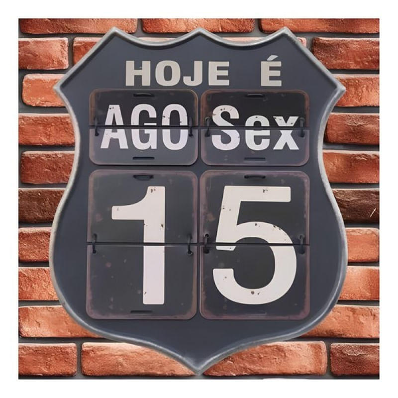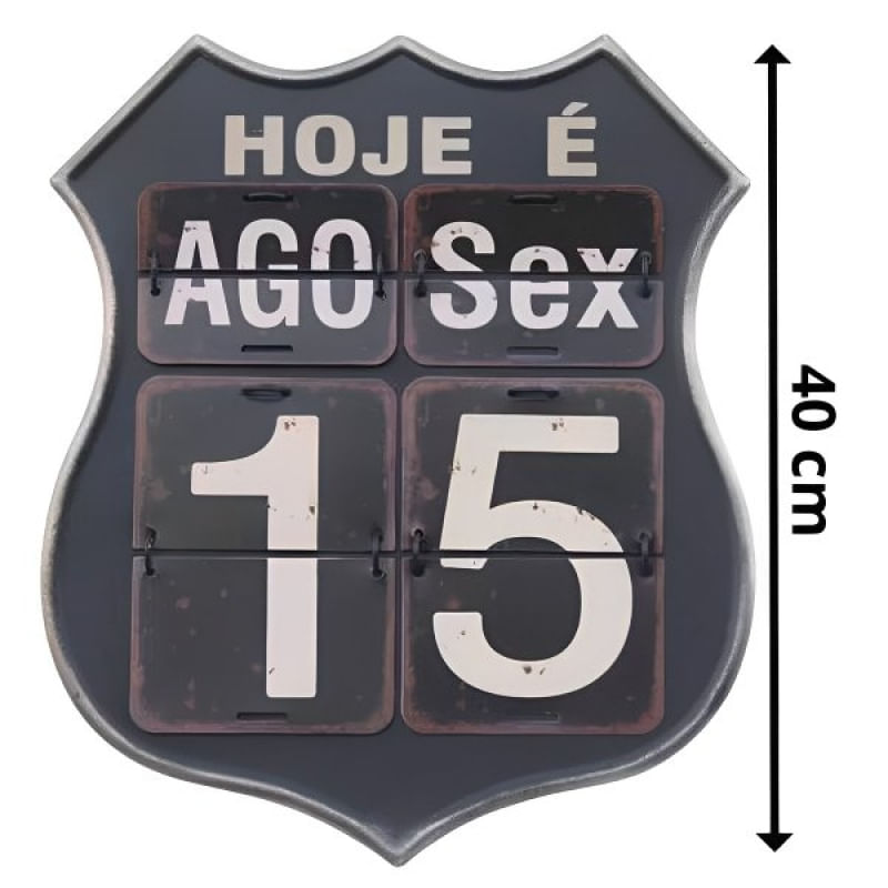 Calendário Decorativo Parede Vintage Retrô Flip 40cm Preto - Calendário De Metal Estilo Placa Route 66 Inspirado no icônico espírito da histórica estrada americana Route 66, este calendário é uma mistura perfeita de funcionalidade e estilo retrô. Construído com metal de alta qualidade e um design impecável de 40cm, o calendário exibe um acabamento robusto, evocando os dias em que as viagens por estrada eram uma aventura emocionante. Seus detalhes meticulosamente trabalhados apresentam a estética vintage, tornando-o uma peça central digna de qualquer parede. calendario de metal preto Mas não é apenas a estética que impressiona. O sistema "Flip" permite que você mude facilmente os dias, meses e anos, proporcionando uma experiência interativa e, ao mesmo tempo, funcional. Além de marcar as datas, serve como uma verdadeira obra de arte decorativa, trazendo personalidade e um toque retrô ao ambiente. Seja para decorar seu escritório, sala de estar ou quarto, o Calendário Decorativo Route 66 Flip é mais do que apenas um calendário - é uma celebração do espírito livre e aventureiro da estrada mais famosa dos Estados Unidos. Uma peça que evoca lembranças, inspira viagens e adiciona um charme vintage inegável a qualquer espaço. Transforme sua parede com esta joia decorativa! Características: Altura: 40cm; Largura: 32cm; Sistema Flip; Cor: Creme, Branco e Preto; Estilo Vintage inspirado na placa Route 66; Indicações de uso: - Decoração De Parede; - Ambientes corporativos e residenciais; Conteúdo da Embalagem: • 1 Calendário De Metal Estilo Placa Route 66; Características Gerais do Produto: • Material: Metal; Ferro • Modelo: Estilo Placa Route 66 • Cor: Branco; Preto • Dimensões aproximadas: Altura de 40cm X 32cm de Largura; Garantia: • Garantia do site - 1 Mês