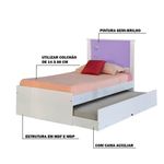 Cama Bibox Solteiro Reino Branco/lilás Gran BeloDescrição do Produto:Cama Bibox Solteiro Reino Branco/Lilás Gran Belo é estilosa e moderno, contendo dois espaços para colchões, uma na parte de cima e outro embaixo. É ideal para quem gosta de receber visitas em casa, pois tem sempre um lugarzinho a mais para descansar. Os profissionais garantem a qualidade do produto. Aproveite!Dimensão do Produto:- Altura:107 Cm;- Largura: 96 Cm;- Profundidade:195 Cm;- Peso: 40 Kg;Caraterísticas do Produto:- Estrutura: MDF/MDP;- Pintura: Semi-brilho;- Colchão: Bicama:Utilizar colchão 88 a 14 cm de altura; Cama auxiliar:Utilizar colchão 88 a 14 cm de altura;- Peso suportado:100 Kg;- Total de Volumes: 3;- Instruções/Cuidado: Utilizar pano seco para limpeza;- Necessita de Montagem: Sim;- Obs:Não acompanha colchão;- Marca: GRAN BELO - Garantia: 90 Dias após o do produtoObservações importantes:- As imagens são meramente ilustrativas e não acompanham objetos de decoração e eletros.- Pode haver alguma diferença de tonalidade entre a imagem e o produto, por conta do tratamento de imagens e a calibração de cores da sua tela.- Todos os nossos produtos são enviados devidamente embalados e com total .- Ao receber o produto o cliente deve verificar as condições da embalagem, havendo alguma não assine o de , Com a para orientações.- A nossa se responsabilizará pela dos produtos adquiridos até a porta de entrada ou portaria do indicado.- Não nos responsabilizamos, no ato da , por montagens, desmontagens e instalações de produtos, bem como, por subir ou descer escadas/elevadores ou pela utilização de guinchos ou equipamentos es para acesso a pisos superiores em apartamentos, casas ou escritórios. Estas despesas adicionais serão de responsabilidade do cliente.- Confira as dimensões do produto no o da compra e certifique-se de que passará normalmente por elevadores, portas, escadas e/ou corredores, evitando assim futuros desagrados ou imprevistos com a do produto.