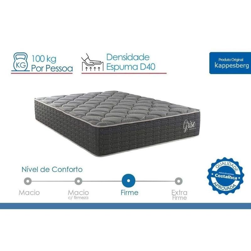 Cama Box Baú Casal + Colchão Ortopédico Kappesberg D40 Anatômico Grise + Base Crc Corano WhiteCama Box Baú Casal + Colchão Anatômico Kappesberg D40 Grise + Base CRC Corano WhiteAbaixo segue os produtos que fazem parte desse KIT:CAMA BOX BAÚ CASAL COSTA RICA CORANO WHITE 138X188X35Marca: A Costa RicaDimensões(Cm): Cama Box Baú Corano WhiteComprimento(Profundidade): 188 cmLargura: 138 cmAltura: 39 cm Profundidade interna do Baú: - 23 cm Abertura do Box Baú: - Abertura do Box Baú Frontal Características Gerais da Cama Box: - Articulação em Aço, Amortecedores de Articulação Forração Revestimento: - Courano, Antiderrapante, Poliéster Cor do Revestimento Cama Box: - Branco Tipo de bordado do tecido da lateral Cama Box: - Matelassê Suporte de Peso da Cama Box: - 150 Kg Sobre os Pés para Cama Box: - Pés Fixos Madeira/ABS Altura das Camas Box com os pés: - 42 cm altura Tempo de Garantia da Cama Box: - 3 meses Certificação de Qualidade: - Selo Ecologicamente Correto, Garantia de Qualidade Costa Rica, Qualidade Compulsória INMETRO Nossa Avaliação da Cama Box: - Qualidade Muito BoaCOLCHÃO CASAL ORTOPÉDICO KAPPESBERG D40 GRISE 138X188X32Marca: KappesbergDimensões(Cm): Colchão Ortopédico D40 GriseComprimento(Profundidade): 188 cmLargura: 138 cmAltura: 32 cm Espuma de Estofamento: - D20 Suporte de Peso: - 110 kg Nível de Firmeza do Colchão: - Firme Tipo de Estrutura Interna: - EPS Estrutura Bloco de Espuma: - Poliuretano, EPS Densidade da Espuma: - D40 Tipo de Colchão: - Anatômico Benefícios Extras de Colchão: - Ecologicamente Correto Tecido com Tratamento: - Antiácaro e Antifungo Características do Tecido: - Jacquard/Malha Tipo do Bordado do Tecido: - Matelassê Tipo de Forração do Revestimento Inferior: - Antiderrapante Tecido da Faixa Lateral: - Poliéster Modo de Utilização: - One Side Certificação de Qualidade: - INMETRO, Qualidade Costa Rica Nossa Avaliação: - Qualidade Boa Tempo de Garantia: - 3 mesesImagens Meramente Ilustrativas.Não nos responsabilizamos pela montagem/instalação dos produtos.Todas as informações divulgadas são de responsabilidade exclusiva do fabricante/fornecedor. Forração Revestimento do Colchão: Poliéster | Nível de Firmeza do Colchão: Firme | Nossa Avaliação do Colchão: Qualidade Boa | Peso Máximo Suportado do Colchão: 120 kg | Tempo de Garantia do Colchão: 12 meses | Vantagens Extras de Colchão: Reforço Polyframe nas bordas | Certificação de Qualidade do Colchão: Qualidade Costa Rica | Tecido de Revestimento da Faixa Lateral do Colchão: Jacquard | Bordado do Revestimento do Colchão: Localizado | Tecido com Tratamento do Colchão: Antiácaro e Antifungo | Tipo de Pillow: Pillow Top Europeu | Modo de Utilização do Colchão: One Side | Forração do Revestimento Inferior do Colchão: Antiderrapante | Camadas Interna do Estofamento de Espuma do Colchão: HiperSoft | Com pillow top: Sim | Tipo de Mola do Colchão: Ensacadas MasterPocket | É eco-friendly: Sim | É hipoalergênica: N/A | É antiácaros: Sim | É colchão na caixa: Não | Requer montagem: Sim | Inclui manual de montagem: Não | Com moldura perimetral: Não | Com pegas laterais: Não | Número de registro/certificação INMETRO: N/A | Tipo de Produto: N/A | É kit?: Não | Fonte do produto: N/A | Código universal de produto (GTIN): 7895155220693 | Descrição do Tamanho: 1.00x:1.00x1.00 cm | Dimensões: 1.00 cm x 1.00 cm x 1.00 cm | Estado de Origem: RJ | País de origem: Nacional | Peso Produto Com Embalagem (Kg): 84.57 | Material para Filtro: N/I | Condição do Item: Novo | Link Site: https://www.costaricacolchoes.com.br/produtos/51904S3122/ | Numeral: 0 | Não se Aplica: N/A | Não Possui: Não | Linha/Modelo: Kappesberg | Cor Cnova: Blush | Cor Meli: Ciano | Contatos Sac Fábrica: moveis@kappesberg.com.br | Categoria Trilha: Conjunto Box Baú + Colchão> Cama Box Baú+Colchão Anatômico | Categoria - Sub: Cama Box Baú+Colchão Anatômico | Categoria - Pai: Conjunto Box Baú + Colchão | Comprimento Embalagem: 1.00 | Largura Embalagem: 1.00 | Altura Embalagem: 1.00 | Kit: 1 | Peso: 84.57 Kg | Peso Real Kg: 84.57 | Peso Cubado: 435.00 | Volumes: 2 | M3: 1.74 | Comprimento/Profundidade: 1 cm | Largura: 1 cm | Altura: 1 cm | Tamanho Montado: Larg:1.00 x Comp/Prof:1.00 x Alt: 1.00 | Comprimento/Profundidade Montado: 1.00 | Largura Montado: 1.00 | Altura Montado: 1.00 | Tamanho Cama Colchão: Casal | Marca: Kappesberg | Fabricante: Kappesberg | Linha: Kappesberg