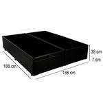 Cama Box Baú Casal Bipartido Sintético Mega Cama Preto 138x188x45cmCama Box Baú Casal Bipartido Sintético Mega Cama Preto 138x188x45cmNossas Bases Box Baú são produzidas com materiais de alta qualidade, garantindo praticidade, conforto, resistência e durabilidade. Além disso, este modelo conta com baú bipartido, facilitando o transporte, a entrada em ambientes menores e o manuseio no dia a dia, sem abrir mão de amplo espaço interno para organização.É a base ideal para oferecer conforto, segurança e sustentação ao seu colchão, além de deixar seu quarto moderno e sofisticado.As cores do produto podem variar conforme o monitor, iluminação e percepção visual.Confira as dimensões antes da compra para garantir que o produto passará por elevadores, portas, escadas e corredores.Características do Baú:Tipo: Baú bipartidoEstrutura Interna: Madeira e estrutura articulada de ferro com pistão a gásEstrutura Externa: Revestimento em tecido sintéticoMarca: Mega CamaTratamento Antiácaro: SimTratamento Antialérgico: SimSaída de Ventilação: SimSuporta até: 150 kgNecessita montagem: NãoAmbiente: QuartoContém 02 puxadores para facilitar a aberturaContém 01 arco traseiro para evitar que o colchão escorregueAltura: 38 cmLargura: 138 cmProfundidade: 188 cmPossui pés: SimAltura dos pés: 7 cm As cores do produto podem variar conforme monitor, iluminação e percepção visual.Confira as dimensões antes da compra para garantir a passagem por elevadores, portas, escadas e corredores.Não realizamos montagem, desmontagem ou transporte por escadas, corredores, elevadores ou içamento externo.