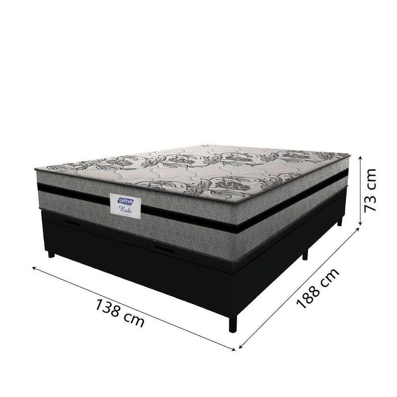 Cama Box Baú Casal Colchão Gazin Com Molas Ensacadas Rubi 138x188x73cm Suede Preto/CinzaVocê merece o melhor quando se trata do seu sono e bem-estar, e por isso o Colchão de Casal Rubi e o Box Baú se tornam a escolha perfeita para o seu quarto! O Colchão é ideal para quem busca qualidade e bem-estar. Com capacidade para até 120 kg por pessoa, ele combina design moderno com materiais de alta durabilidade. Seu revestimento superior em matelassê malha, oferece resistência e uma sensação de maciez ao toque. Além disso, as Molas ensacadas de alta qualidade garantem suporte firme e confortável, tornando suas noites ainda mais relaxantes. Perfeito para quem não abre mão de conforto e elegância! O Box é feito de suede, possui baú e um sistema de abertura fácil, onde você terá mais espaço para poder guardar os seus objetos pessoais, roupas, travesseiros, edredons. Confeccionado com materiais de qualidade garantindo maior durabilidade e resistência.MEDIDAS DO COLCHÃO:A = 32 cmL = 138 cmP = 188 cmMEDIDAS DO BOX:A = 41 cm / 35 cm (sem pés)L = 138 cmP = 188 cmALTURA DOS PÉS: 6 cmPESO: 63,2 KgPESO SUPORTADO: 120 kg por pessoaCaracterísticasMODELO: Cama Box Baú Casal Colchão Com Molas Ensacadas Rubi 138x188x73cm Suede Preto/CinzaMARCA COLCHÃO: GazinCOR: Preto/CinzaREVESTIMENTO SUPERIOR: Tecido de malha cinza floral (matelassê) com fibra siliconadaREVESTIMENTO LATERAL: Tecido 100% poliéster, por ser sintético não é propenso ao acúmulo de poeira e materiais orgânico, além de ser de fácil higienizaçãoREVESTIMENTO INTERIOR: Molas Ensacadas aliada com espuma D60, permitindo que o colchão suporte até 120 kg por pessoaMOLAS: Molas ensacadas de alta qualidade, que proporcionam maior suporte ao corpoPOSSUI EPS: SimTECIDO BOX: SuedeMATERIAL DA ESTRUTURA DO BOX: Madeira de reflorestamentoMATERIAL DOS PÉS: PVCITENS INCLUSOS: 1 Colchão de 1,38m e 1 box baú de 1,38mINSTRUÇÕES / CUIDADOS: Utilizar em local seco com passagem de ar, não dobrar, fazer giro quinzenalmente no sentido pés/cabeceiraGARANTIA COLCHÃO: 12 MesesGARANTIA BOX: 3 MesesA Esplanada Móveis se responsabiliza pela entrega dos produtos adquiridos até a porta de entrada ou portaria do endereço indicado, se a portaria do condomínio permitir, as entregas são efetuadas no piso térreo e é de responsabilidade do cliente a locomoção da mercadoria até seu apartamento ou casa.Confira as dimensões do produto e certifique-se de que estão adequadas aos elevadores, portas e corredores do local da entrega. Não fazemos a montagem, desmontagem do produto e/ou portas e janelas, locomoção pela escada ou içamento pelo lado de fora do prédio. Não está incluso na entrega o deslocamento até o interior do apartamento, com ou sem elevador, ou deslocamento em locais de difícil acesso como escadarias.Caso o cliente necessite de entrega dentro das dificuldades mencionadas, deverá entrar em contato para análise e dúvidas.Certifique-se de tudo antes de finalizar a compra, evitando assim futuros desagrados ou imprevistos com a entrega. MEDIDAS DO COLCHÃO:: A = 32 cm L = 138 cm P = 188 cm | MEDIDAS DO BOX:: A = 41 cm / 35 cm (sem pés) L = 138 cm P = 188 cm | ALTURA DOS PÉS:: 6 cm | PESO:: 63,2 Kg | PESO SUPORTADO:: 120 kg por pessoa | REVESTIMENTO SUPERIOR:: Tecido de malha cinza floral (matelassê) com fibra siliconada | REVESTIMENTO LATERAL:: Tecido 100% poliéster, por ser sintético não é propenso ao acúmulo de poeira e materiais orgânico, além de ser de fácil higienização | MODELO:: Cama Box Baú Casal Colchão Com Molas Ensacadas Rubi 138x188x73cm Suede Preto/Cinza | COR:: Preto/Cinza | MARCA COLCHÃO:: Gazin | REVESTIMENTO INTERIOR:: Molas Ensacadas aliada com espuma D60, permitindo que o colchão suporte até 120 kg por pessoa | MOLAS:: Molas ensacadas de alta qualidade, que proporcionam maior suporte ao corpo | POSSUI EPS:: Sim | TECIDO BOX:: Suede | MATERIAL DA ESTRUTURA DO BOX:: Madeira de reflorestamento | MATERIAL DOS PÉS:: PVC | ITENS INCLUSOS:: 1 Colchão de 1,38m e 1 box baú de 1,38m | INSTRUÇÕES / CUIDADOS:: Utilizar em local seco com passagem de ar, não dobrar, fazer giro quinzenalmente no sentido pés/cabeceira | GARANTIA BOX:: 3 Meses | GARANTIA COLCHÃO:: 12 Meses | REQUER MONTAGEM:: Sim | ALTURA:: 73 cm | LARGURA:: 138 cm | PROFUNDIDADE:: 188 cm | TAMANHO DA CAMA:: Casal | TIPO DE CAMA:: Padrão Cor: Preto/Cinza