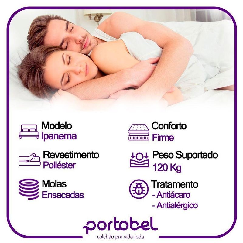 Cama Box Baú Casal Sintético + Colchão De Molas Ensacadas Portobel Ipanema - 138x188x66cm CinzaCama Box Baú Casal Sintético + Colchão de Molas Ensacadas Portobel Ipanema - 138x188x66cmTransforme o seu quarto com a Cama Box Baú Casal Sintético SerenePrime, que alia sofisticação e conforto. Com um acabamento em tecido sintético e elegante, esta cama box baú proporciona um visual moderno e aconchegante, perfeito para qualquer ambiente.Desfrute de noites mais confortáveis com o Colchão Portobel, projetado para proporcionar um sono reparador com a combinação perfeita de suporte e maciez. Suas molas ensacadas de 10 cm são individualmente embaladas, permitindo um melhor ajuste ao corpo e reduzindo a transmissão de movimento, ideal para quem divide a cama. A espuma D26 oferece a densidade ideal para o suporte sem perder o conforto, além de ser altamente resistente, garantindo durabilidade ao longo dos anos.O núcleo em EPS de 11 cm de altura reforça a estrutura do colchão, proporcionando firmeza extra e sustentação. O tampo em malha 100% poliéster oferece uma sensação agradável ao toque e é altamente respirável, mantendo uma temperatura agradável durante o sono. A faixa lateral em suede não só eleva o estilo do colchão, como também contribui para sua resistência e acabamento refinado, combinando perfeitamente com qualquer ambiente.Este colchão é a escolha perfeita para quem busca noites tranquilas e renovadoras. Suas dimensões de 138 cm de largura, 25 cm de altura e 188 cm de profundidade são ideais para quem deseja um colchão de tamanho confortável e com excelente suporte. Invista em qualidade e durabilidade com o Colchão Portobel, feito para transformar suas noites de descanso.Especificações Técnicas Colchão:Marca: PortobelModelo: Molas Ensacadas IpanemaComposição: Molas, Espuma D26, EPS de 11cm de altura.Proteções: Antiácaro - AntialérgicoTecido de Revestimento: Faixa em suedeForração Revestimento: Tampo de malha 100% poliesterDimensões do Colchão (largura x comprimeento x altura) Casal: 138x188x25cmEspecificações Técnicas Base Box Baú:Marca: Home QueenMaterial: madeira tratadaPeso máximo recomendado: até 120Kg (por pessoa)Revestimento: material (tecido) sintéticoAltura da base: 35cmAltura dos pés: 6cmComprimento: 188cmLargura: 138cm*As cores do produto podem variar de acordo com o monitor, a iluminação do ambiente e a sua percepção visual.*Confira as dimensões do produto e certifique-se de que passará normalmente por supostos elevadores, portas, escadas e/ou corredores de sua residência.*Verifique nossas politicas internas para que não haja nenhuma dúvida no processo de entrega ao finalizar a compra, pois não fazemos a montagem e desmontagem do produto e não nos responsabilizamos por subir escadas, corredores e elevadores ou transporte por içamento pelo lado de fora do prédio.