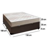 Cama Box Baú Casal Sintético + Colchão De Molas Ensacadas Portobel Ipanema - 138x188x66cm MarromCama Box Baú Casal Sintético + Colchão de Molas Ensacadas Portobel Ipanema - 138x188x66cmTransforme o seu quarto com a Cama Box Baú Casal Sintético SerenePrime, que alia sofisticação e conforto. Com um acabamento em tecido sintético e elegante, esta cama box baú proporciona um visual moderno e aconchegante, perfeito para qualquer ambiente.Desfrute de noites mais confortáveis com o Colchão Portobel, projetado para proporcionar um sono reparador com a combinação perfeita de suporte e maciez. Suas molas ensacadas de 10 cm são individualmente embaladas, permitindo um melhor ajuste ao corpo e reduzindo a transmissão de movimento, ideal para quem divide a cama. A espuma D26 oferece a densidade ideal para o suporte sem perder o conforto, além de ser altamente resistente, garantindo durabilidade ao longo dos anos.O núcleo em EPS de 11 cm de altura reforça a estrutura do colchão, proporcionando firmeza extra e sustentação. O tampo em malha 100% poliéster oferece uma sensação agradável ao toque e é altamente respirável, mantendo uma temperatura agradável durante o sono. A faixa lateral em suede não só eleva o estilo do colchão, como também contribui para sua resistência e acabamento refinado, combinando perfeitamente com qualquer ambiente.Este colchão é a escolha perfeita para quem busca noites tranquilas e renovadoras. Suas dimensões de 138 cm de largura, 25 cm de altura e 188 cm de profundidade são ideais para quem deseja um colchão de tamanho confortável e com excelente suporte. Invista em qualidade e durabilidade com o Colchão Portobel, feito para transformar suas noites de descanso.Especificações Técnicas Colchão:Marca: PortobelModelo: Molas Ensacadas IpanemaComposição: Molas, Espuma D26, EPS de 11cm de altura.Proteções: Antiácaro - AntialérgicoTecido de Revestimento: Faixa em suedeForração Revestimento: Tampo de malha 100% poliesterDimensões do Colchão (largura x comprimeento x altura) Casal: 138x188x25cmEspecificações Técnicas Base Box Baú:Marca: Home QueenMaterial: madeira tratadaPeso máximo recomendado: até 120Kg (por pessoa)Revestimento: material (tecido) sintéticoAltura da base: 35cmAltura dos pés: 6cmComprimento: 188cmLargura: 138cm*As cores do produto podem variar de acordo com o monitor, a iluminação do ambiente e a sua percepção visual.*Confira as dimensões do produto e certifique-se de que passará normalmente por supostos elevadores, portas, escadas e/ou corredores de sua residência.*Verifique nossas politicas internas para que não haja nenhuma dúvida no processo de entrega ao finalizar a compra, pois não fazemos a montagem e desmontagem do produto e não nos responsabilizamos por subir escadas, corredores e elevadores ou transporte por içamento pelo lado de fora do prédio.