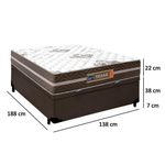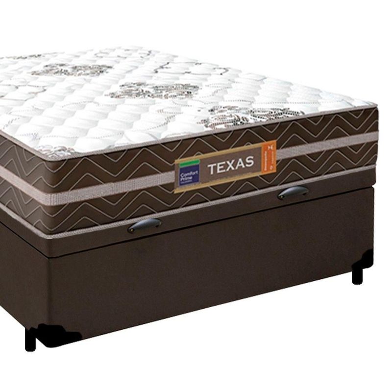 Cama Box Baú Casal Sintético + Colchão Molas Ensacadas Texas Prime Colchões 138x188x67cm MarromA Cama Box Baú Casal Sintético + Colchão Molas Ensacadas Texas 138x188x67cmÉ uma combinação que oferece uma solução completa, agilidade e praticidade na aquisição da sua cama. O Colchão Casal Texas Molas Ensacadas foi criado pensando em você. Possui molas ensacadas em sua composição, o que proporciona um conforto único. A capacidade de suporte é de até 120kg por pessoa, garantindo conforto durante o sono, além de promover um melhor apoio e qualidade de vida.A Cama Box é a opção ideal para maior aproveitamento do quarto, pois oferece espaço extra e praticidade. Produto de alta durabilidade, resistente e excelente qualidade em acabamento, totalmente em suede, o que lhe confere elegância e sofisticação em qualquer ambiente.Características do Colchão:- Marca: Prime Colchões- Cor: Marrom/Branco- Espuma: D26- Modelo: Texas- Tamanho: Casal- Tipo de Molas: Ensacadas- Revestimento Superior: Poliéster- Revestimento Lateral: Poliéster- Capacidade: 120kg por pessoas- Interior: Molas ensacadas, com espuma D26- Dimensões do colchão (largura x comprimento x altura): 138x188x22cmCaracterísticas do Box:- Estrutura Interna: Estrutura em madeira 100% de Reflorestamento- Marca: Mega Cama- Estrutura Externa: Sintético- Tratamento Antiácaro: Sim- Tratamento Antialérgico: Sim- Saída de Ventilação: Não- Ortopédico: Não- Tecido Antiderrapante: Não- Suporta até (kg): 150 Kg- Necessita Montagem: Não- Dimensões do box (largura x comprimento x altura): 138x188x45cmDimensões do Produto:- Altura (Box + Colchão): 67cm- Largura: 138cm- Comprimento: 188cm- Altura dos Pés: 7cm*As cores do produto podem variar de acordo com o monitor, a iluminação do ambiente e a sua percepção visual.**Confira as dimensões do produto e certifique-se de que passará normalmente por supostos elevadores, portas, escadas e/ou corredores de sua residência.**Verifique nossas politicas internas para que não haja nenhuma dúvida no processo de entrega ao finalizar a compra, pois não fazemos a montagem e desmontagem do produto e/ou portas e janelas, transporte pela escada ou içamento pelo lado de fora do prédio.*