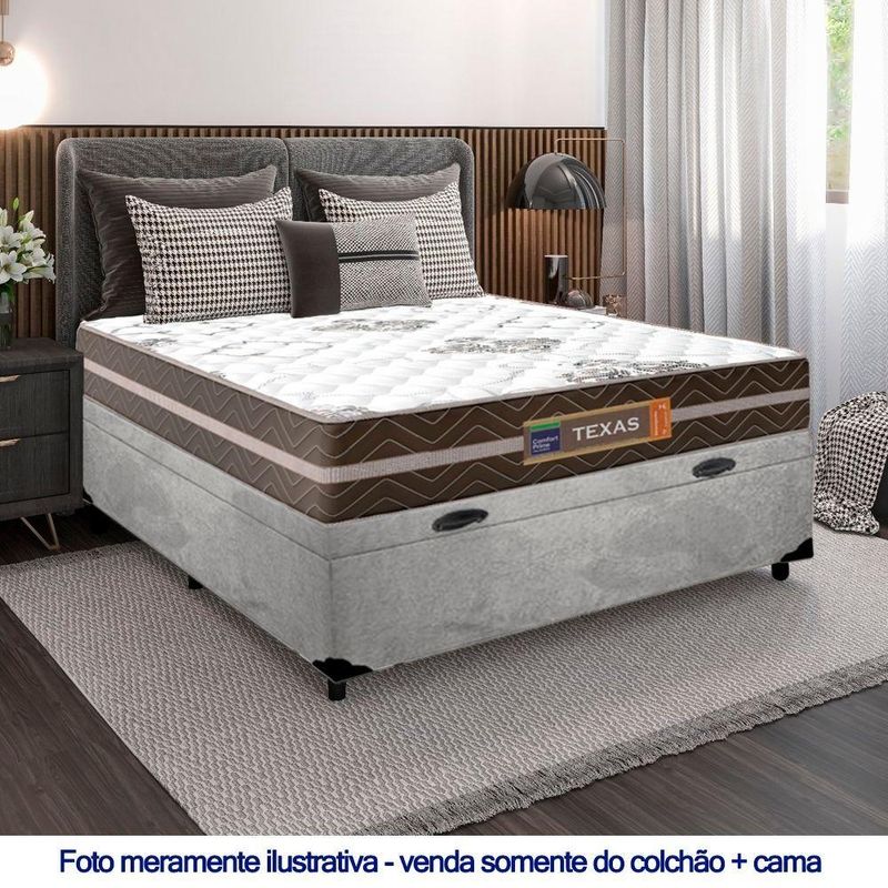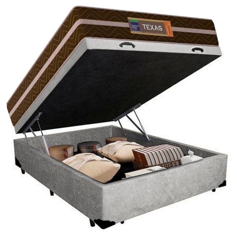 Cama Box Baú Casal Suede + Colchão Molas Ensacadas Texas Prime Colchões 138cm Cinza - Suporta Até 120 Kg Por PessoaA Cama Box Baú Casal Suede + Colchão Molas Ensacadas Texas 138x188x67cmÉ uma combinação que oferece uma solução completa, agilidade e praticidade na aquisição da sua cama. O Colchão Casal Texas Molas Ensacadas foi criado pensando em você. Possui molas ensacadas em sua composição, o que proporciona um conforto único. A capacidade de suporte é de até 120kg por pessoa, garantindo conforto durante o sono, além de promover um melhor apoio e qualidade de vida.A Cama Box é a opção ideal para maior aproveitamento do quarto, pois oferece espaço extra e praticidade. Produto de alta durabilidade, resistente e excelente qualidade em acabamento, totalmente em suede, o que lhe confere elegância e sofisticação em qualquer ambiente.Características do Colchão:- Marca: Prime Colchões- Cor: Marrom/Branco- Espuma: D26- Modelo: Texas- Tamanho: Casal- Tipo de Molas: Ensacadas- Revestimento Superior: Poliéster- Revestimento Lateral: Poliéster- Capacidade: 120kg por pessoas- Interior: Molas ensacadas, com espuma D26- Dimensões do colchão (largura x comprimento x altura): 138x188x22cmCaracterísticas do Box:- Estrutura Interna: Estrutura em madeira 100% de Reflorestamento- Marca: Mega Cama- Estrutura Externa: Suede- Tratamento Antiácaro: Sim- Tratamento Antialérgico: Sim- Saída de Ventilação: Não- Ortopédico: Não- Tecido Antiderrapante: Não- Suporta até (kg): 150 Kg- Necessita Montagem: Não- Dimensões do box (largura x comprimento x altura): 138x188x44cmDimensões do Produto:- Altura (Box + Colchão): 67cm- Largura: 138cm- Comprimento: 188cm- Altura dos Pés: 7cm*As cores do produto podem variar de acordo com o monitor, a iluminação do ambiente e a sua percepção visual.**Confira as dimensões do produto e certifique-se de que passará normalmente por supostos elevadores, portas, escadas e/ou corredores de sua residência.**Verifique nossas politicas internas para que não haja nenhuma dúvida no processo de entrega ao finalizar a compra, pois não fazemos a montagem e desmontagem do produto e/ou portas e janelas, transporte pela escada ou içamento pelo lado de fora do prédio.*