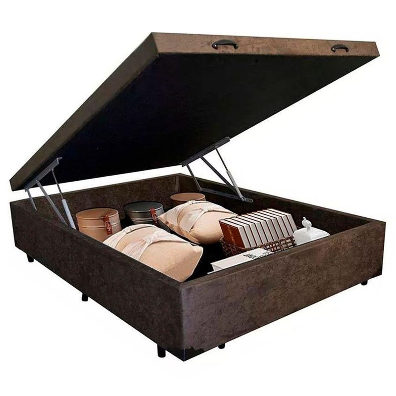 Cama Box Baú Casal Suede Mega Cama 138x188x45 MarromCama Box Baú Casal Suede Mega Cama 138x188x45 MarromNossas Base Box Baú são produzidas com os melhores materiais proporcionando praticidade, conforto, uma alta resistência e durabilidade prolongada, tornando-se uma peça que pode ser combinada com a decoração de seu quarto deixando-o moderno e sofisticado. Sabia que é a base para cama box que garante conforto, segurança e a sustentação ideal para seu colchão? Pois é! Além disso, é bom dizer que as bases convencionais vêm apenas com espaço para colocar o colchão.As cores do produto podem variar de acordo com o monitor, a iluminação do ambiente e a sua percepção visual.Confira as dimensões do produto e certifique-se de que passará normalmente por supostos elevadores, portas, escadas e/ou corredores de sua residência.Características do Baú:- Estrutura Interna: Todos os nossos produtos são produzidos com madeira e estrutura articulada de ferro com pistão de gás;- Estrutura Externa: Revestimento Tecido Suede;- Marca: Mega Cama- Tratamento Antiácaro: Sim;- Tratamento Antialérgico: Sim;- Saida de Ventilação: Sim;- Suporta até (kg): 150 Kg;- Necessita Montagem: Não;- Ambiente: Quarto;- Contém 02 puxadores, para maior facilidade na abertura;- Contém 01 arco na parte de trás para o colchão não escorregar;- Altura: 38 cm;- Largura: 138 cm;- Profundidade: 188 cm;- Possui Pés: Sim;- Altura dos Pés: 7 cm.*As cores do produto podem variar de acordo com o monitor, a iluminação do ambiente e a sua percepção visual.*Confira as dimensões do produto e certifique-se de que passará normalmente por supostos elevadores, portas, escadas e/ou corredores de sua residência.*Verifique nossas politicas internas para que não haja nenhuma dúvida no processo de entrega ao finalizar a compra, pois não fazemos a montagem e desmontagem do produto e não nos responsabilizamos por subir escadas, corredores e elevadores ou transporte por içamento pelo lado de fora do prédio.