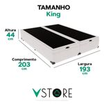 Cama Box Baú King Branco V-store 193x203x44A tecnologia que a sua casa merece está na V-Store!A Base Box Baú Bravus da V-Store combina praticidade e elegância, sendo a escolha perfeita para quem busca organização e estilo. Feita com madeira reflorestada e revestida com tecido sintético, ela oferece resistência e facilidade de manutenção, além de proporcionar um excelente espaço de armazenamento para travesseiros, malas e cobertores.Com capacidade para 150 kg por pessoa e Selo Ecologicamente Correto, essa base é ideal para otimizar seu espaço sem abrir mão da sustentabilidade.Adquira já a sua Base Box Baú Bravus V-Store e transforme seu dormitório com praticidade e sofisticação!CARACTERÍSTICAS DO PRODUTOMarca: V-StoreModelo: BravusCor do Box: BrancoTamanho KingDimensões: 193x44x203 (Largura x Altura x Comprimento)Estrutura: MadeiraPeso máximo recomendado: 150 kg (Por Pessoa)Altura do Box: 38 cmAltura dos Pés: 6 cmAltura total: 44 cmGarantia: 12 Meses (Estrutura) / 3 meses (Tecido)Selo Ecologicamente CorretoAtenção:- Antes de finalizar sua compra, recomendamos que verifique se as dimensões do produto são adequadas para serem transportadas pelos elevadores, portas, escadas e corredores de sua residência. Ressaltamos que não nos responsabilizamos pelo transporte do produto por meios específicos, como escadas, guinchos ou içamentos.- É possível que hajam leves variações de cor de acordo com o dispositivo que está sendo utilizado como smartphones, computadores, monitores e outros.