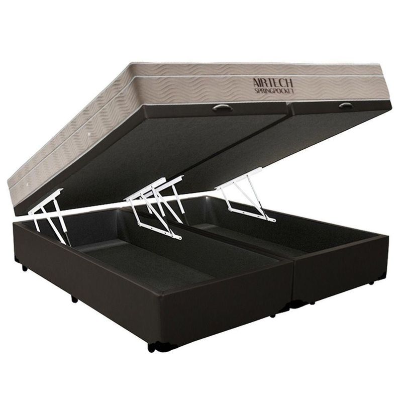 Cama Box Baú King Sintético Bipartido + Colchão Ortobom Airtech Molas Ensacadas 65x193x203 Cor:marromO Colchão De Molas Ensacadas AirTech Ortobom é indicado para pessoas de até 150kg proporcionando conforto firme, o que lhe confere firmeza suficiente para preservar sua coluna durante o sono sem comprometer seu conforto. Fabricado com matérias-primas de alta qualidade e durabilidade, o AirTech Molas Ensacadas Ortobom garante conforto e por muito mais tempo.**As cores do produto podem variar de acordo com o monitor, a iluminação do ambiente e a sua percepção visual.****Confira as dimensões do produto e certifique-se de que passará normalmente por supostos elevadores, portas, escadas e/ou corredores de sua residência**Benefícios Externos do Colchão- Tipo de Pillow: Pillow Top Europeu- Tipo de Bordado do Tecido de Revestimento: Bordado Matelassê- Tipo Tecido de Forração Revestimento: Malha Importada- Tipo de Tecido de Revestimento da Faixa Lateral: Em Nobuck- Tecido com Tratamento: e - Modo de Utilização: One Side No Turn- Tipo de Forração do Revestimento Inferior: AntiderrapanteCaracterísticas Interna do Colchão- Tipo de Estrutura de Molas: Molas Ensacadas- Camadas Interna do Estofamento de Espuma: Espuma de Qualidade- Outras Características Internas: Polyframe Reforço nas bordas/ Placa de EpsCaracterísticas Gerais do Colchão- Suporte de Peso: até 120 Kg- Tipo de Conforto: Firme- Largura: 193cm- Comprimento: 203cm- Altura: 25cmBenefícios Gerais do ColchãoCertificados de Qualidade- Certificação de Qualidade Aprovada- Selo Ecologicamente Correto- Certificado inmetroVantagens Extras do o colchões de molas ensacadas- Ecológicamente CorretoNossa Avaliação- Classificação de Qualidade Muito BoaCaracterísticas do Baú:- Estrutura Interna: Estrutura em madeira 100% de Reflorestamento;- Estrutura Externa: Sintético;- Tratamento : Sim;- Tratamento : Sim;- Saida de Ventilação: Não;- Ortopedico: Não;- Tecido Antiderrapante: Não;- Suporta até (kg): 150 Kg;- Necessita Montagem: Não.- Altura: 28cm;- Largura: 193cm- Comprimento: 203cm- Altura dos Pés: 12cm;Verifique nossas politicas internas para que não haja nenhuma dúvida no processo de ao finalizar a compra, pois não fazemos a montagem e desmontagem do produto e/ou portas e janelas, pela escada ou içamento pelo lado de fora do prédio.