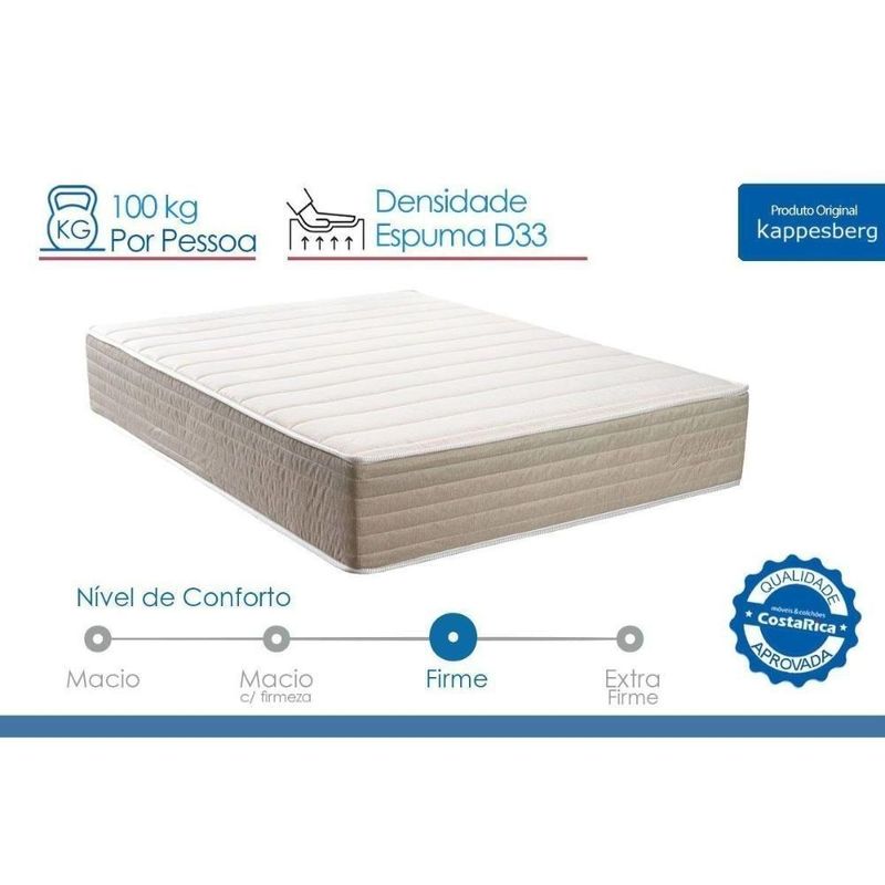 Cama Box Baú Novo + Colchão D33 Kappesberg Anatômico Carmine + Base Crc Corano BrownCama Box Baú NOVO + Colchão Anatômico Kappesberg D33 Carmine + Base CRC Corano BrownAbaixo segue os produtos que fazem parte desse KIT:CAMA BOX BAÚ CASAL COSTA RICA CORANO BROWN 138X188X35Marca: A Costa RicaDimensões(Cm): Cama Box Baú Corano BrownComprimento(Profundidade): 188 cmLargura: 138 cmAltura: 39 cm Profundidade interna do Baú: - 23 cm Abertura do Box Baú: - Abertura do Box Baú Frontal Características Gerais da Cama Box: - Articulação em Aço, Amortecedores de Articulação Forração Revestimento: - Courano, Antiderrapante, Poliéster Cor do Revestimento Cama Box: - Marrom Tipo de bordado do tecido da lateral Cama Box: - Matelassê Suporte de Peso da Cama Box: - 150 Kg Sobre os Pés para Cama Box: - Pés Fixos Madeira/ABS Altura das Camas Box com os pés: - 42 cm altura Tempo de Garantia da Cama Box: - 3 meses Certificação de Qualidade: - Selo Ecologicamente Correto, Garantia de Qualidade Costa Rica, Qualidade Compulsória INMETRO Nossa Avaliação da Cama Box: - Qualidade Muito BoaCOLCHÃO CASAL ORTOPÉDICO KAPPESBERG D33 CARMINE 138X188X32Marca: KappesbergDimensões(Cm): Colchão Ortopédico D33 CarmineComprimento(Profundidade): 188 cmLargura: 138 cmAltura: 32 cm Suporte de Peso: - 110 kg Espuma de Estofamento: - D20 Nível de Firmeza do Colchão: - Firme Tipo de Estrutura Interna: - EPS Estrutura Bloco de Espuma: - Poliuretano, EPS Densidade da Espuma: - D33 Tipo de Colchão: - Anatômico Benefícios Extras de Colchão: - Ecologicamente Correto Tecido com Tratamento: - Antiácaro e Antifungo Características do Tecido: - Jacquard/Malha Tipo do Bordado do Tecido: - Matelassê Tipo de Forração do Revestimento Inferior: - Antiderrapante Tecido da Faixa Lateral: - Poliéster Modo de Utilização: - One Side Certificação de Qualidade: - INMETRO, Qualidade Costa Rica Nossa Avaliação: - Qualidade Boa Tempo de Garantia: - 3 mesesImagens Meramente Ilustrativas.Não nos responsabilizamos pela montagem/instalação dos produtos.Todas as informações divulgadas são de responsabilidade exclusiva do fabricante/fornecedor. Forração Revestimento do Colchão: Poliéster | Nível de Firmeza do Colchão: Firme | Nossa Avaliação do Colchão: Qualidade Boa | Peso Máximo Suportado do Colchão: 120 kg | Tempo de Garantia do Colchão: 12 meses | Vantagens Extras de Colchão: Reforço Polyframe nas bordas | Certificação de Qualidade do Colchão: Qualidade Costa Rica | Tecido de Revestimento da Faixa Lateral do Colchão: Jacquard | Bordado do Revestimento do Colchão: Localizado | Tecido com Tratamento do Colchão: Antiácaro e Antifungo | Tipo de Pillow: Pillow Top Europeu | Modo de Utilização do Colchão: One Side | Forração do Revestimento Inferior do Colchão: Antiderrapante | Camadas Interna do Estofamento de Espuma do Colchão: HiperSoft | Com pillow top: Sim | Tipo de Mola do Colchão: Ensacadas MasterPocket | É eco-friendly: Sim | É hipoalergênica: N/A | É antiácaros: Sim | É colchão na caixa: Não | Requer montagem: Sim | Inclui manual de montagem: Não | Com moldura perimetral: Não | Com pegas laterais: Não | Número de registro/certificação INMETRO: N/A | Tipo de Produto: N/A | É kit?: Não | Fonte do produto: N/A | Código universal de produto (GTIN): 7895155220433 | Descrição do Tamanho: 1.00x:1.00x1.00 cm | Estado de Origem: RJ | Dimensões: 1.00 cm x 1.00 cm x 1.00 cm | País de origem: Nacional | Peso Produto Com Embalagem (Kg): 69.38 | Material para Filtro: N/I | Condição do Item: Novo | Link Site: https://www.costaricacolchoes.com.br/produtos/51897S3122/ | Numeral: 0 | Não se Aplica: N/A | Não Possui: Não | Linha/Modelo: Kappesberg | Cor Cnova: Blush | Cor Meli: Ciano | Contatos Sac Fábrica: moveis@kappesberg.com.br | Categoria Trilha: Conjunto Box Baú + Colchão> Cama Box Baú+Colchão Anatômico | Categoria - Sub: Cama Box Baú+Colchão Anatômico | Categoria - Pai: Conjunto Box Baú + Colchão | Comprimento Embalagem: 1.00 | Largura Embalagem: 1.00 | Altura Embalagem: 1.00 | Kit: 1 | Peso: 69.38 Kg | Peso Real Kg: 69.38 | Peso Cubado: 435.00 | Volumes: 2 | M3: 1.74 | Comprimento/Profundidade: 1 cm | Largura: 1 cm | Altura: 1 cm | Tamanho Montado: Larg:1.00 x Comp/Prof:1.00 x Alt: 1.00 | Comprimento/Profundidade Montado: 1.00 | Largura Montado: 1.00 | Altura Montado: 1.00 | Tamanho Cama Colchão: Casal | Marca: Kappesberg | Fabricante: Kappesberg | Linha: Kappesberg