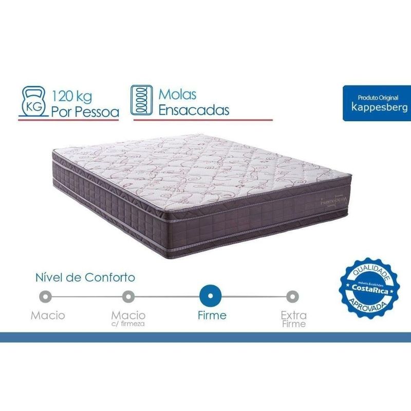 Cama Box Baú Novo + Colchão Molas Kappesberg Ensacadas Inverno Verão + Base Crc Courano WhiteCama Box Baú NOVO + Colchão Molas Kappesberg Ensacadas Inverno Verão + Base CRC Courano WhiteAbaixo segue os produtos que fazem parte desse KIT:COLCHÃO QUEEN MOLAS ENSACADAS KAPPESBERG INVERNO/VERÃO 158X198X32Marca: KappesbergDimensões(Cm): Colchão Molas Ensacadas Inverno/VerãoComprimento(Profundidade): 198 cmLargura: 158 cmAltura: 32 cm Suporte de Peso: - 120 kg Espuma de Estofamento: - D33 Nível de Firmeza do Colchão: - Firme Densidade da Espuma: - D28 Tipo de Mola: - Ensacadas MasterPocket Tipo de Colchão: - Molas Benefícios Extras de Colchão: - Ecologicamente Correto, Reforço Polyframe nas bordas Tecido com Tratamento: - Antiácaro e Antifungo Características do Tecido: - Poliéster Tipo do Bordado do Tecido: - Matelassê Tecido da Faixa Lateral: - Poliéster Tipo de Pillow: - Duplo Modo de Utilização: - Double Side Certificação de Qualidade: - INMETRO, Qualidade Costa Rica Nossa Avaliação: - Qualidade Muito Boa Tempo de Garantia: - 3 mesesCAMA BOX BAÚ QUEEN COSTA RICA CORANO WHITE 158X198X35Marca: A Costa RicaDimensões(Cm): Cama Box Baú Corano WhiteComprimento(Profundidade): 198 cmLargura: 158 cmAltura: 39 cm Profundidade interna do Baú: - 23 cm Abertura do Box Baú: - Abertura do Box Baú Frontal Características Gerais da Cama Box: - Articulação em Aço, Amortecedores de Articulação Forração Revestimento: - Courano, Antiderrapante, Poliéster Cor do Revestimento Cama Box: - Branco Tipo de bordado do tecido da lateral Cama Box: - Matelassê Suporte de Peso da Cama Box: - 150 Kg Sobre os Pés para Cama Box: - Pés Fixos Madeira/ABS Altura das Camas Box com os pés: - 42 cm altura Tempo de Garantia da Cama Box: - 3 meses Certificação de Qualidade: - Selo Ecologicamente Correto, Garantia de Qualidade Costa Rica, Qualidade Compulsória INMETRO Nossa Avaliação da Cama Box: - Qualidade Muito BoaImagens Meramente Ilustrativas.Não nos responsabilizamos pela montagem/instalação dos produtos.Todas as informações divulgadas são de responsabilidade exclusiva do fabricante/fornecedor. Forração Revestimento do Colchão: Poliéster | Nível de Firmeza do Colchão: Firme | Nossa Avaliação do Colchão: Qualidade Boa | Peso Máximo Suportado do Colchão: 120 kg | Tempo de Garantia do Colchão: 12 meses | Vantagens Extras de Colchão: Reforço Polyframe nas bordas | Certificação de Qualidade do Colchão: Qualidade Costa Rica | Tecido de Revestimento da Faixa Lateral do Colchão: Jacquard | Bordado do Revestimento do Colchão: Localizado | Tecido com Tratamento do Colchão: Antiácaro e Antifungo | Tipo de Pillow: Pillow Top Europeu | Modo de Utilização do Colchão: One Side | Forração do Revestimento Inferior do Colchão: Antiderrapante | Camadas Interna do Estofamento de Espuma do Colchão: HiperSoft | Com pillow top: Sim | Tipo de Mola do Colchão: Ensacadas MasterPocket | É eco-friendly: Sim | É hipoalergênica: N/A | É antiácaros: Sim | É colchão na caixa: Não | Requer montagem: Sim | Inclui manual de montagem: Não | Com moldura perimetral: Não | Com pegas laterais: Não | Número de registro/certificação INMETRO: N/A | Tipo de Produto: N/A | É kit?: Não | Fonte do produto: N/A | Código universal de produto (GTIN): 7895155220594 | Descrição do Tamanho: 1.00x:1.00x1.00 cm | Estado de Origem: RJ | Dimensões: 1.00 cm x 1.00 cm x 1.00 cm | País de origem: Nacional | Peso Produto Com Embalagem (Kg): 102.59 | Material para Filtro: N/I | Condição do Item: Novo | Link Site: https://www.costaricacolchoes.com.br/produtos/51901S3124/ | Numeral: 0 | Não se Aplica: N/A | Não Possui: Não | Linha/Modelo: Kappesberg | Cor Cnova: Blush | Cor Meli: Ciano | Contatos Sac Fábrica: moveis@kappesberg.com.br | Categoria Trilha: Conjunto Box Baú + Colchão> Cama Box Baú+Colchão Molas | Categoria - Sub: Cama Box Baú+Colchão Molas | Categoria - Pai: Conjunto Box Baú + Colchão | Comprimento Embalagem: 1.00 | Largura Embalagem: 1.00 | Altura Embalagem: 1.00 | Peso: 102.59 Kg | Kit: 1 | Peso Real Kg: 102.59 | Peso Cubado: 522.50 | Volumes: 3 | M3: 2.09 | Comprimento/Profundidade: 1 cm | Largura: 1 cm | Altura: 1 cm | Tamanho Montado: Larg:1.00 x Comp/Prof:1.00 x Alt: 1.00 | Comprimento/Profundidade Montado: 1.00 | Largura Montado: 1.00 | Altura Montado: 1.00 | Tamanho Cama Colchão: Queen | Marca: Kappesberg | Fabricante: Kappesberg | Linha: Kappesberg