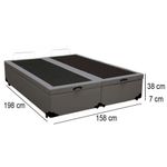 Cama Box Baú Queen Bipartido Sintético Mega Cama Cinza 158x198x45cmCama Box Baú Queen Bipartido Sintético Mega Cama Cinza 158x198x45cmA Base Box Baú é confeccionada com estrutura de madeira 100% reflorestada com tratamentos Antialérgico e Antiácaro, proporcionando alta durabilidade e resistência do produto. Possui excelente acabamento dando um ar de sofisticação e requinte.Especificações Técnicas Base Box Baú:Material: Estrutura blindada em madeira 100% de ReflorestamentoProteções: Antialérgico - AntiácaroPeso máximo Recomendado: até 150kgRevestimento: Material (tecido) SintéticoAltura da base: 38cmAltura dos pés: 7cmDimensões do produto:Altura Total (base + pés): 45cmLargura: 158cm (Duas bases com 79cm cada uma)Comprimento: 198cm*As cores do produto podem variar de acordo com o monitor, a iluminação do ambiente e a sua percepção visual.*Confira as dimensões do produto e certifique-se de que passará normalmente por supostos elevadores, portas, escadas e/ou corredores de sua residência.*Verifique nossas politicas internas para que não haja nenhuma dúvida no processo de entrega ao finalizar a compra, pois não fazemos a montagem e desmontagem do produto e não nos responsabilizamos por subir escadas, corredores e elevadores ou transporte por içamento pelo lado de fora do prédio.