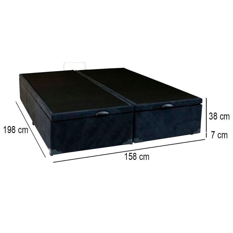 Cama Box Baú Queen Bipartido Suede Mega Cama Preto 158x198x45cmCama Box Baú Queen Bipartido Suede Mega Cama Preto 158x198x45cmA Base Box Baú é confeccionada com estrutura de madeira 100% reflorestada com tratamentos Antialérgico e Antiácaro, proporcionando alta durabilidade e resistência do produto. Possui excelente acabamento dando um ar de sofisticação e requinte.Especificações Técnicas Base Box Baú:Material: Estrutura blindada em madeira 100% de ReflorestamentoProteções: Antialérgico - AntiácaroPeso máximo Recomendado: até 150kgRevestimento: Material (tecido) SuedeAltura da base: 38cmAltura dos pés: 7cmDimensões do produto:Altura Total (base + pés): 45cmLargura: 158cm (Duas bases com 79cm cada uma)Comprimento: 198cm*As cores do produto podem variar de acordo com o monitor, a iluminação do ambiente e a sua percepção visual.*Confira as dimensões do produto e certifique-se de que passará normalmente por supostos elevadores, portas, escadas e/ou corredores de sua residência.*Verifique nossas politicas internas para que não haja nenhuma dúvida no processo de entrega ao finalizar a compra, pois não fazemos a montagem e desmontagem do produto e não nos responsabilizamos por subir escadas, corredores e elevadores ou transporte por içamento pelo lado de fora do prédio.