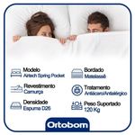 Cama Box Baú Queen Suede Bipartido + Colchão Ortobom Airtech Molas Ensacadas 65x158x198 Cor:begeO Colchão De Molas Ensacadas AirTech Ortobom é indicado para pessoas de até 150kg proporcionando conforto firme, o que lhe confere firmeza suficiente para preservar sua coluna durante o sono sem comprometer seu conforto. Fabricado com matérias-primas de alta qualidade e durabilidade, o AirTech Molas Ensacadas Ortobom garante conforto e por muito mais tempo.As cores do produto podem variar de acordo com o monitor, a iluminação do ambiente e a sua percepção visual.Confira as dimensões do produto e certifique-se de que passará normalmente por supostos elevadores, portas, escadas e/ou corredores de sua residência.Especificações Técnicas Colchão:- Marca: Ortobom;- Tipo de Mola: (Ensacadas);- Proteções: - - - ;- Acabamento: Bordado em Matelassê;- Matéria prima: Mola Ensacada / Espuma / Tecido;- Tipo de conforto: Firme;- Peso máximo recomendado: até 150 Kg (por pessoa);- Dimensões: 25x158x198cm.Características do Box:- Estrutura Interna: Estrutura em madeira 100% de Reflorestamento;- Estrutura Externa: Suede;- Tratamento : Sim;- Tratamento : Sim;- Saída de Ventilação: Não;- Ortopédico: Não;- Tecido Antiderrapante: Não;- Suporta até (kg): 150 Kg;- Necessita Montagem: Não.- Altura: 40cm;- Largura: 158cm;- Comnto: 198cm; Verifique nossas politicas internas para que não haja nenhuma dúvida no processo de ao finalizar a compra, pois não fazemos a montagem e desmontagem do produto e/ou portas e janelas, pela escada ou içamento pelo lado de fora do prédio.
